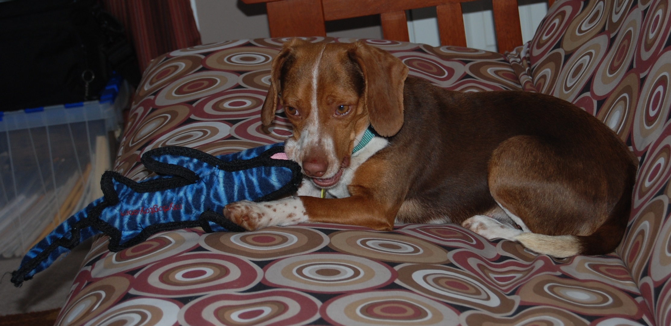 But now she’s been here long enough, she’s more like family. So we scold her and grumble at her and yesterday I snapped at her (granted she had just stolen the sock I was trying to put on my foot). It’s become evident that she’s getting awfully comfortable.