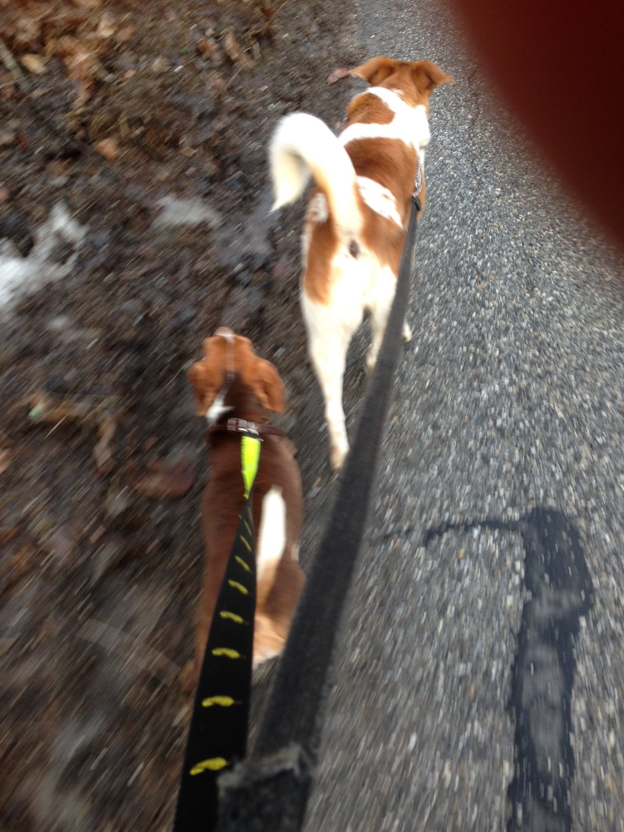 She’s getting dedicated exercise. At least one long walk every day and a quick run around outside every few hours in the hopes that this will dispel some of her energy. It’s helped, but G really has two speeds – full-on-happy and snuggle-mode. No matter how far I walk/run her, that doesn’t change.