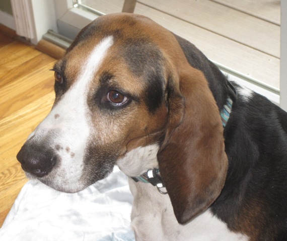 Having grown up in Alexandria, Carla has obviously tried to fit the suburban neighborhood dog mold with only limited success. Unlike your typical coonhound, Carla has wonderful manners. She waits patiently while I prepare her dinner, she walks nicely on a leash rarely pulling, and she is polite with the other dogs. I’m hoping her time here will help her rediscover her hound roots.