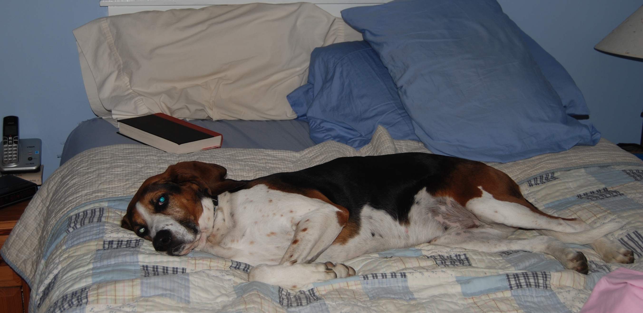 When we picked out our first puppy at the shelter and brought her home. Nick was firm – no dogs on the furniture. After her initial protest, Shamu resigned herself to sleeping in a box in the kitchen and after the puppy moved in, she took to under the beds.
