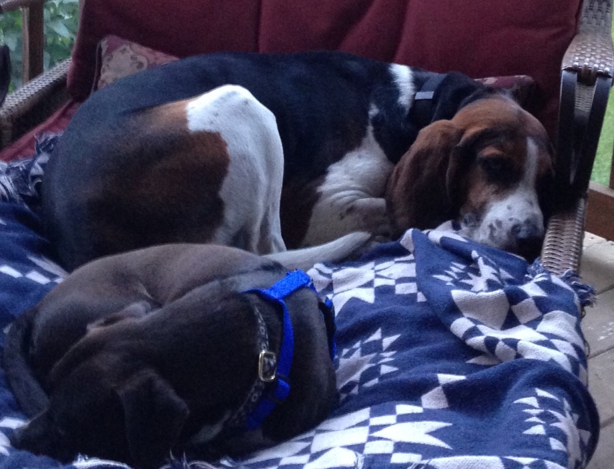 We had two charming visitors for the holiday weekend. After surviving ten days of three dogs, I was confident we could handle four, especially on a gorgeous weekend with no actual plans, just lots of ideas. Kylie and Hitch (sounds like a movie title) are foster dogs we dogsat over the holiday weekend while their foster parents went camping.