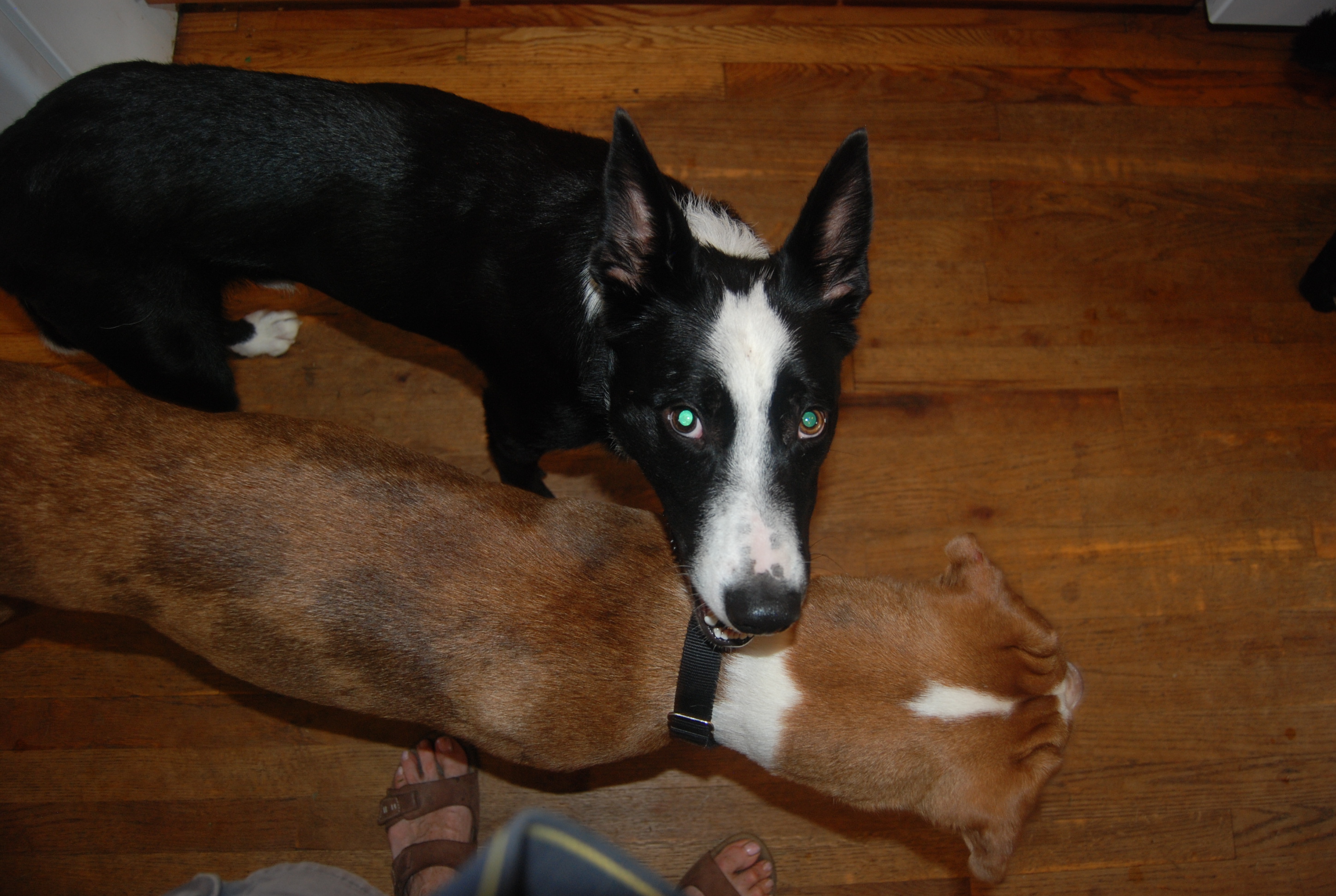 He’s felt threatened from the moment he entered. He’s jealous of the attention I shower on the boys, nudging his head under my arm and pulling it away when I pet them. He’s felt threatened in his role as alpha dog by Tennessee and the two have had several scary tussles that required me to remove Frank forcibly from the room. Frank is a different dog in this dog-filled house, just as he was in a dog-less house. Sure, he’s still his goofy sweet self most of the time, but he’s exhibiting behaviors we hadn’t seen the first time around.