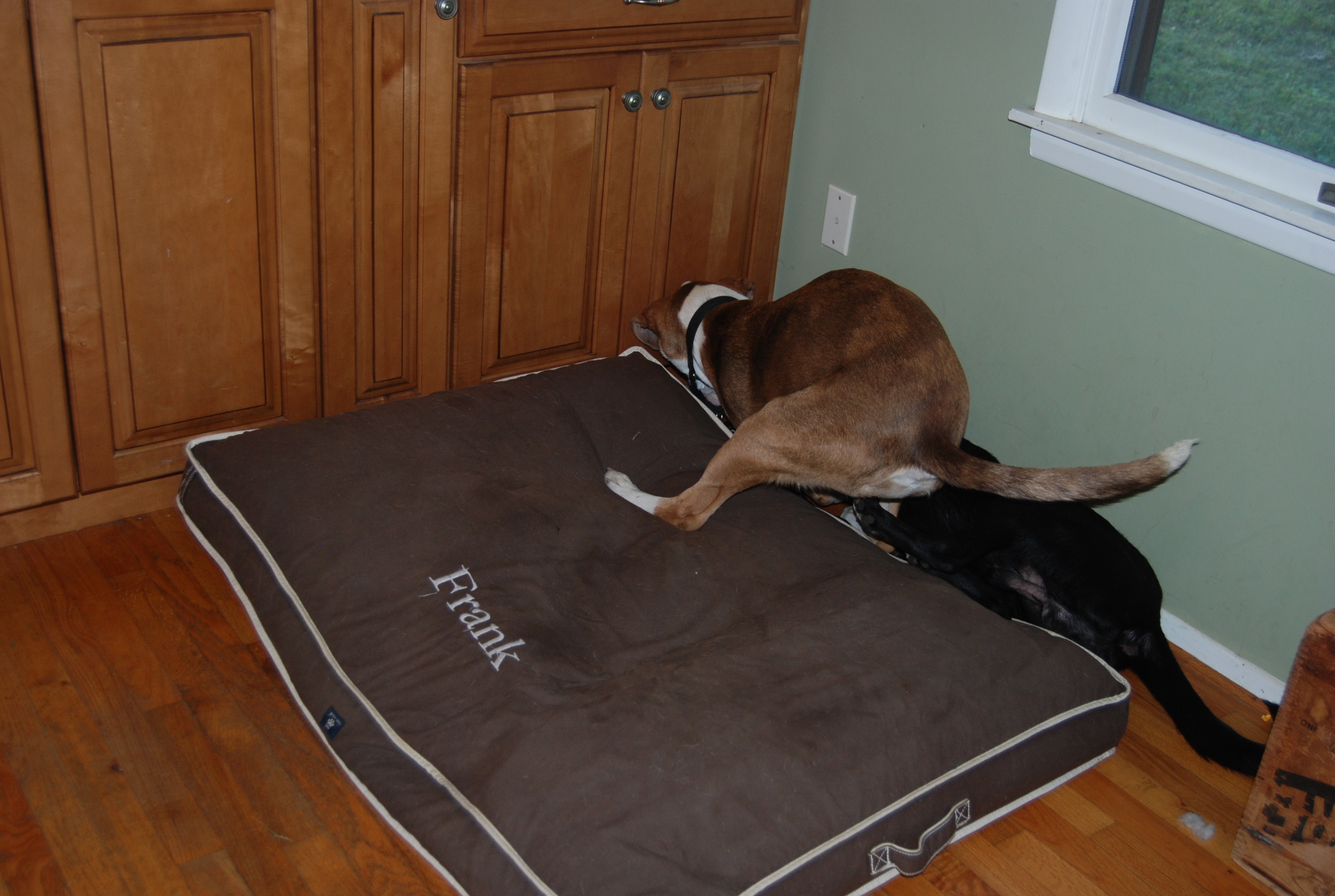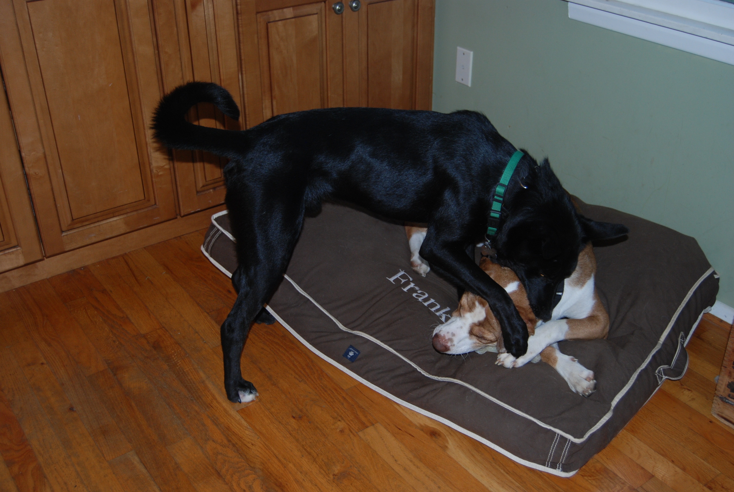 He’s grown as devoted as Frank, whining when I leave the room and waiting at the door whenever I go out. They watch my every move (that’s when they can stay awake after their nonstop wrestling fests).