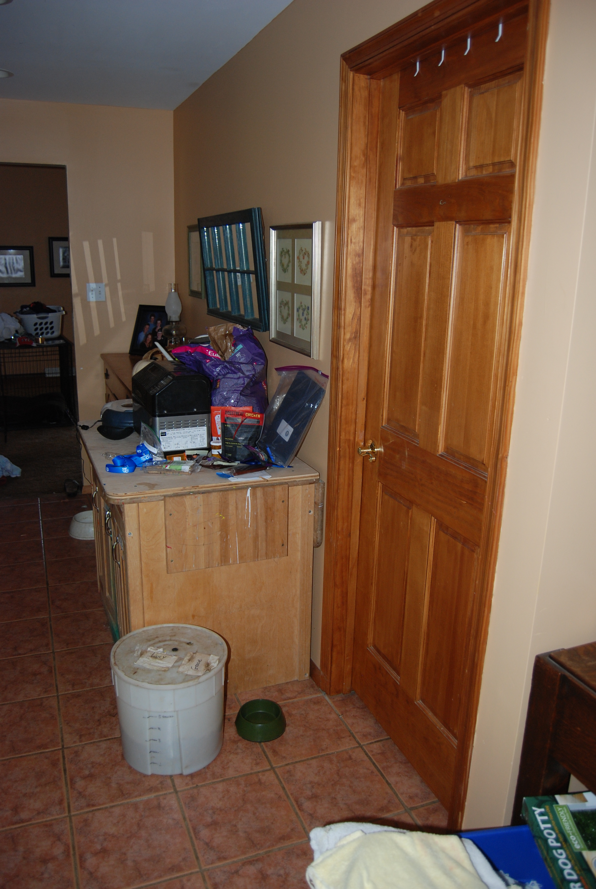 In our entrance hall, you will now discover, not just several bags of dogfood (puppy, personal dog, foster dog), but also the cabinet that used to reside in our mudroom…
