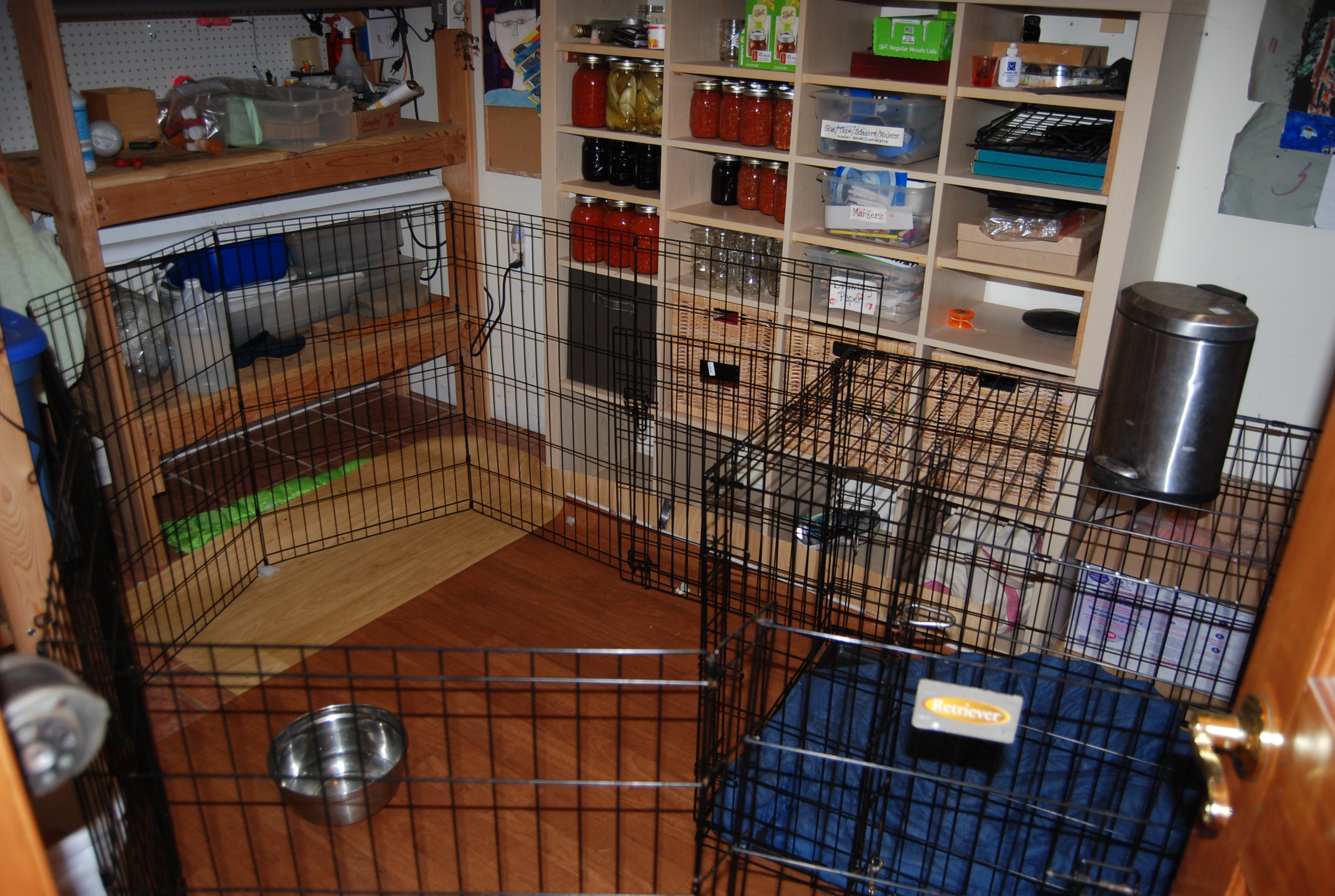 There’s no room for the cabinet in the mudroom now because it has been transformed into the puppy palace.