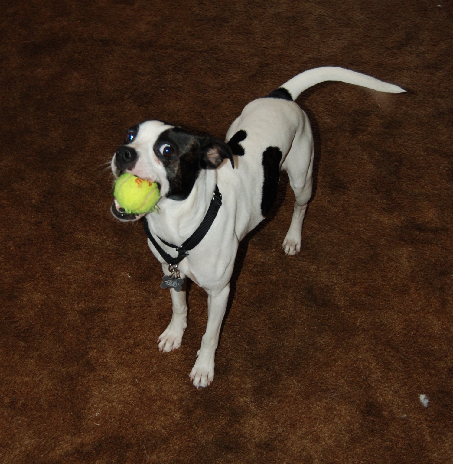 My 13-year-old son had planned to have friends over to make a music video showcasing John Coffey on Sunday. You may recall that the weather was pretty nice this weekend. So, teenage intentions being what they are, the video didn’t happen, but the fort in the woods and the baseball game in the yard did. My hubby is the bestest, so he took the downloaded footage and put it together in a little montage for your viewing pleasure. I wish the film quality was better, but hopefully you’ll still get a good idea of John Coffey’s happy talented nature. There’s a little ball catching plus some dancing-with-the-slipper (another of his favorite activities which showcases how well he can entertain himself).