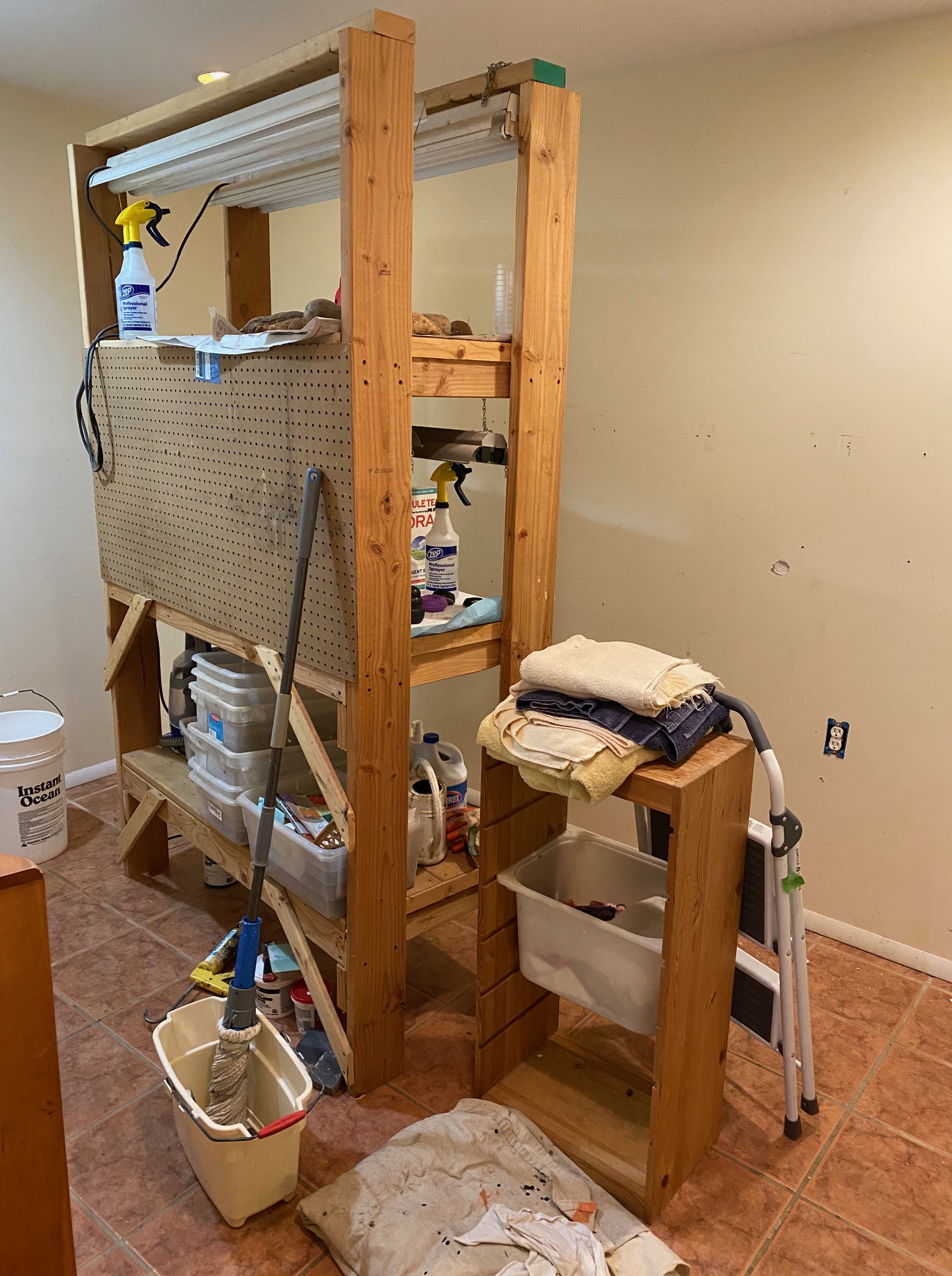 We’ve completely torn apart our puppy room—throwing out everything to remove every trace of parvo we can, even tearing up the vinyl floor, throwing away countless towels, blankets, and toys, bleaching the walls, molding, tile, puppy fences, even the coat rack hooks and shelving that was high above the puppies’ heads. Parvo is simply too pervasive and dangerous to risk anything. In fact, tonight we will paint the walls and molding with Klls and soon Nick will replace the utility sink.