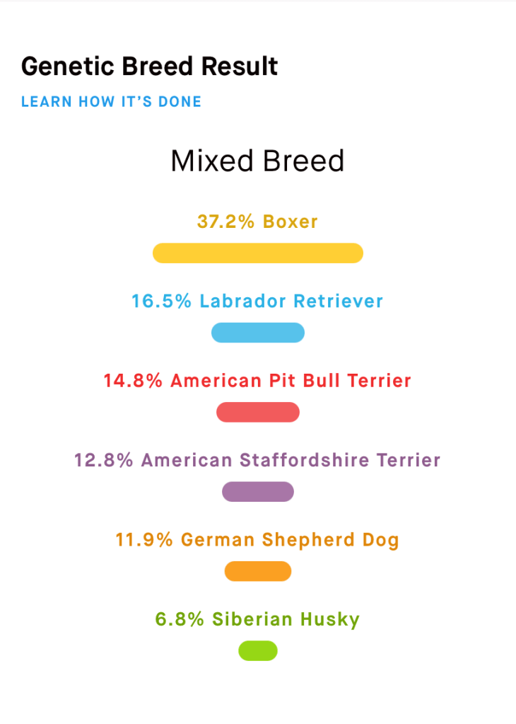 One of Otis’ siblings’ adopters had a DNA analysis from Embark done on their pup. The percentages of each breed will vary some between siblings, but here are the breeds found in Otis’ brother’s genes: