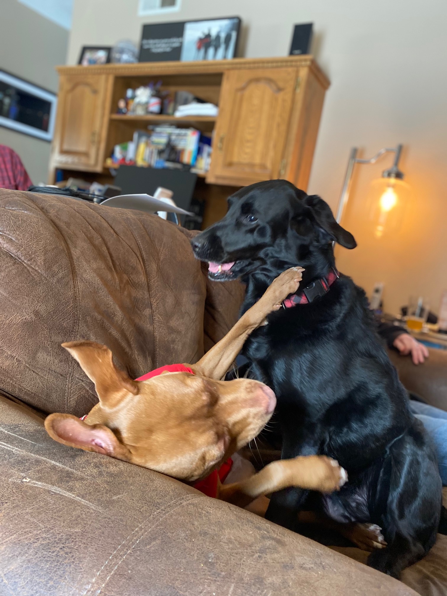 Mia’s high happy energy is fun, but it can also make Gracie bark more and Fanny stress more. Everyone asks why we don’t adopt Mia, whom we clearly love, and this is why. She is just about the coolest dog I could wish for, but with the current make up in our house (grumpy dog and extremely shy, anxious dog), a high energy dog does not help the chemistry. A friendly, easy-going puppy has definitely helped, though. (and Otis loves Mia too!)