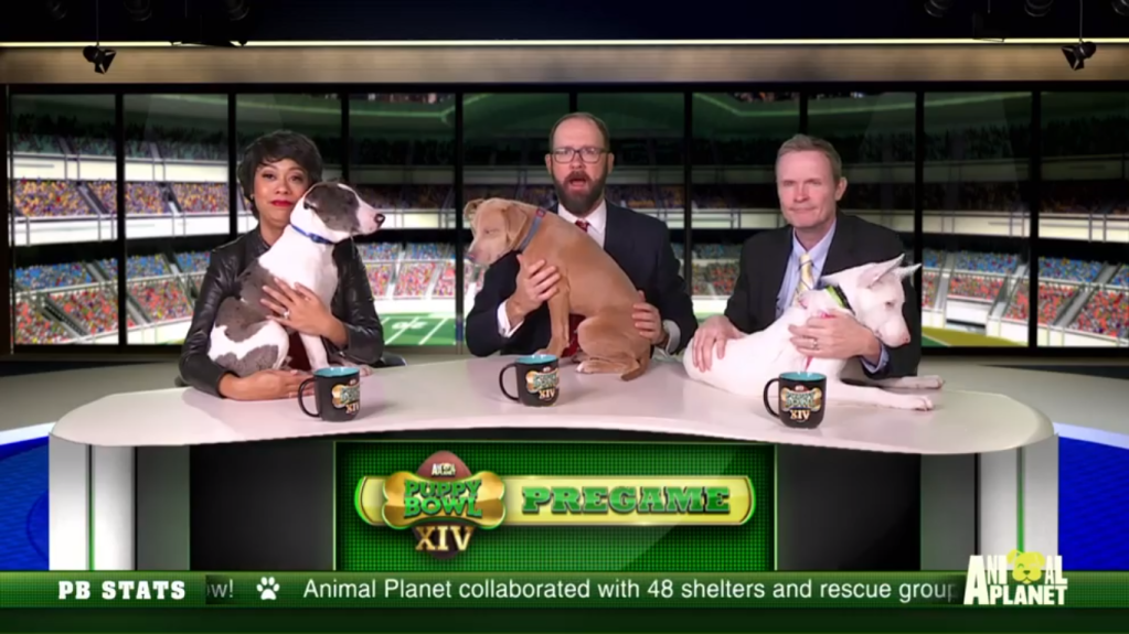 All of the participants in the Puppy Bowl get their DNA analysis done and more than once the results were quite a surprise. It was also fun to see so many OPH puppies in the puppy bowl. Three of them even scored, although my favorite part was when Milky Way wouldn’t give up the ‘ball’ and her competitor had to drag her across the turf. Someday I hope I’ll have a pup in the Puppy Bowl. The closest I’ve come was two years ago, when my Frankie was on the pregame show.