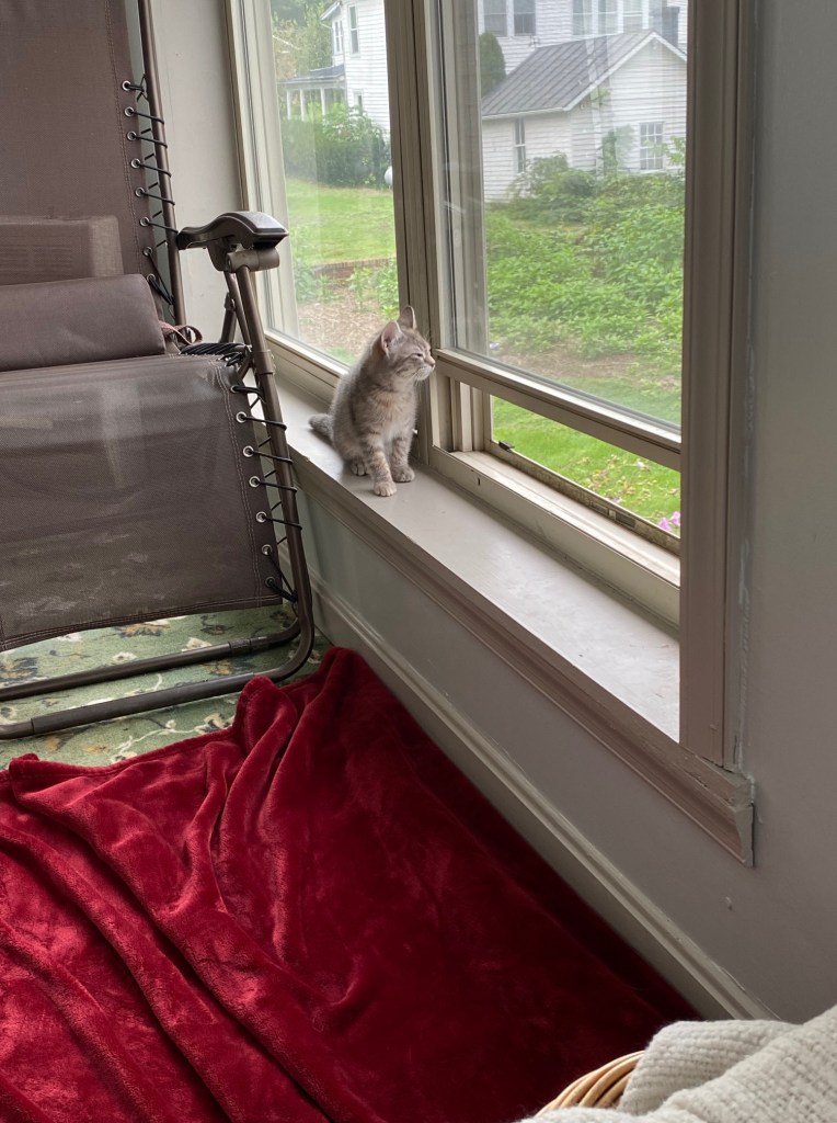 Here’s the thing, though—I’m pretty sure I basically stole this cat. Her actions and her desire to get outside make it clear she lives outside a lot. So, my best guess is she’s somebody’s cat and they let her run amuck in our little town. Of course, I will return her to her people, but I also feel pretty confident I’m going to see her squished on the road one day.