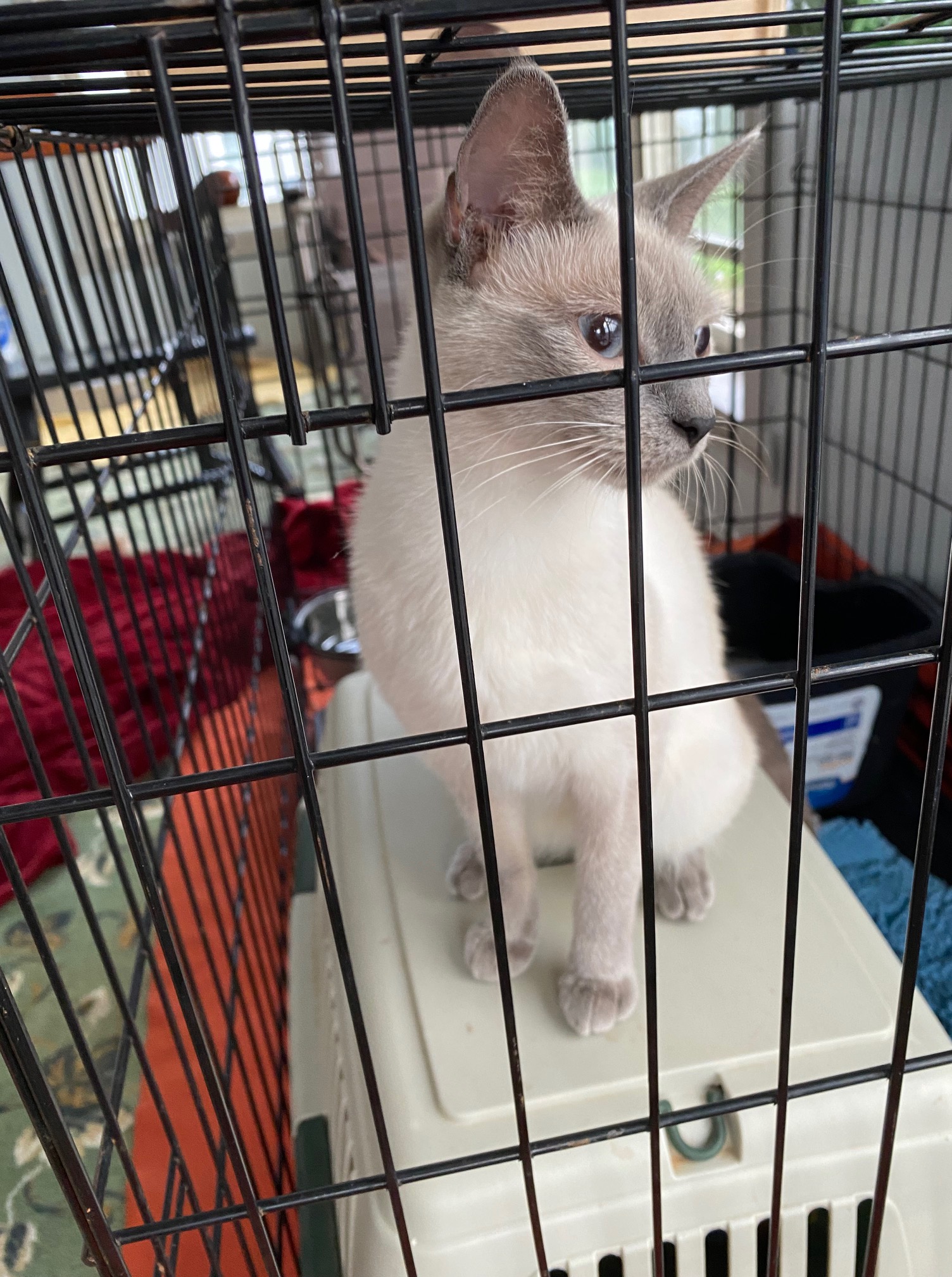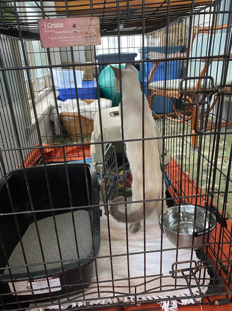 So I took her home and installed her in a crate on the cat porch.