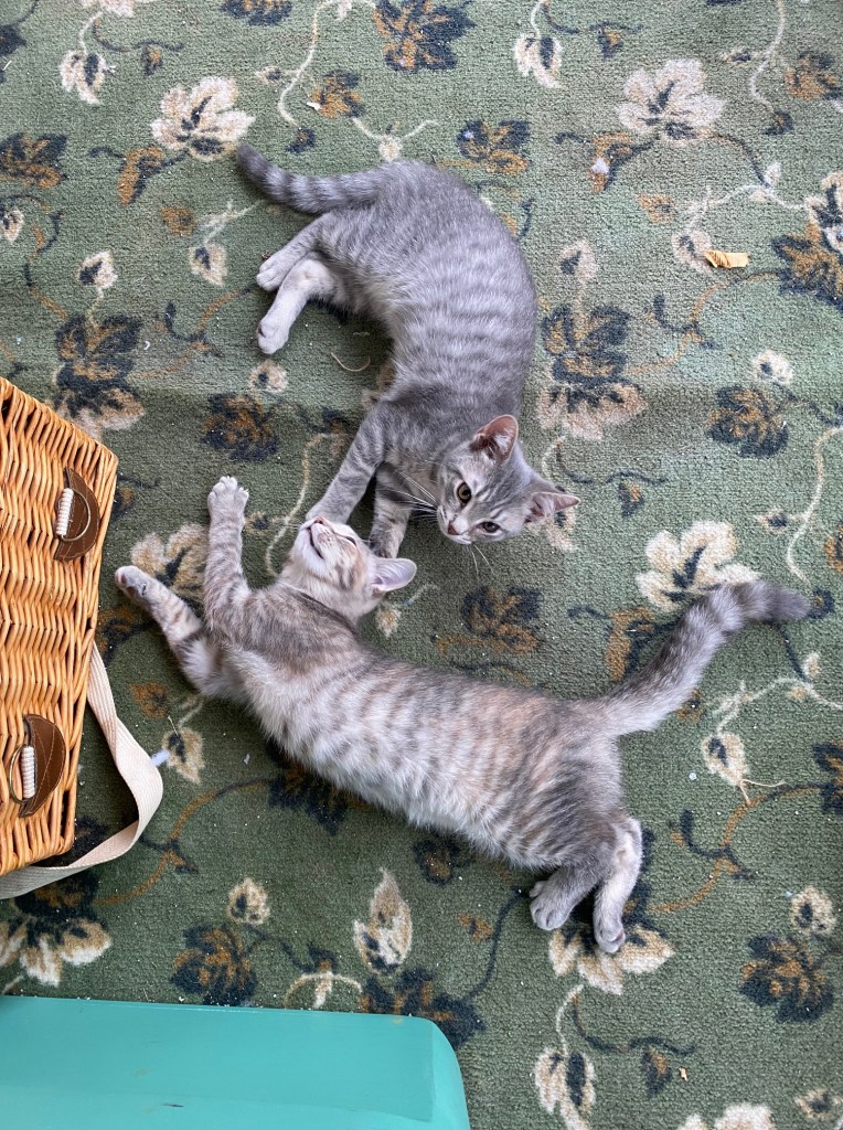 If you’ve been keeping score, you’ll want to know that my foster kittens, Bonnie and Clyde, were spayed/neutered and have left the building. But that is only to go to another building (Petsmart in Winchester). Cat fostering continues to be an entirely new experience for me. Apparently, being showcased at Petsmart means they’ll have a new home in no time. Happy for these two cuties and hoping for the best!