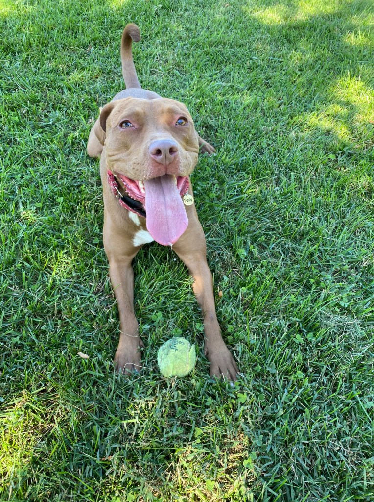 Fanny, on the other hand, would LOVE to play with all the dogs but her style of place is more Greco-Roman wrestling than chase or tug. Some most dogs don’t appreciate that about her.