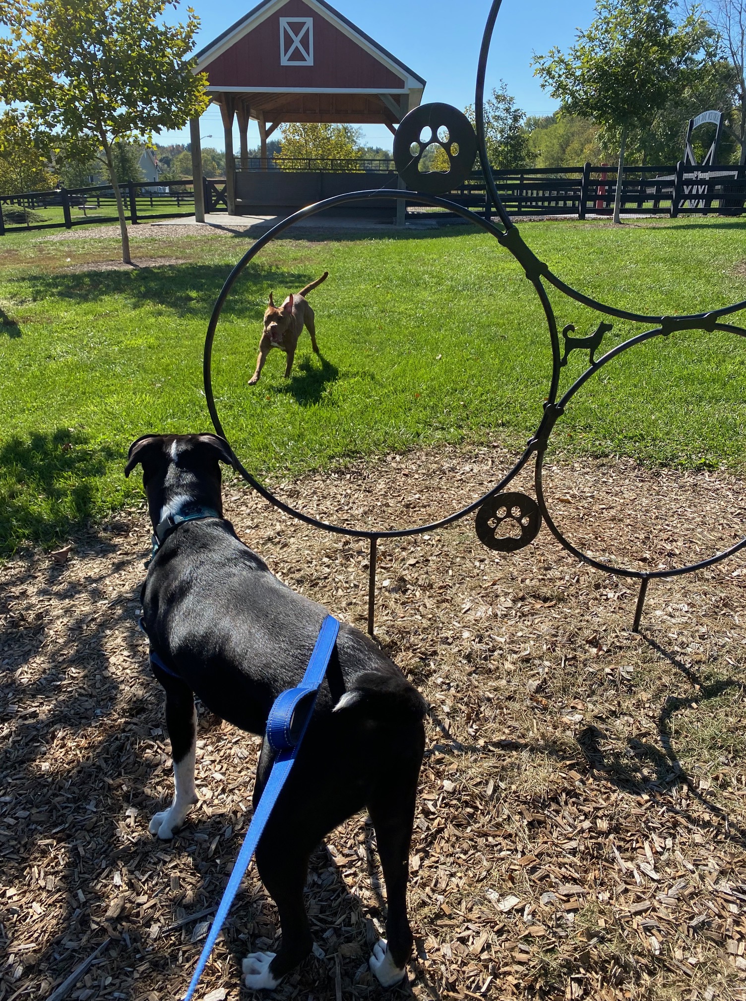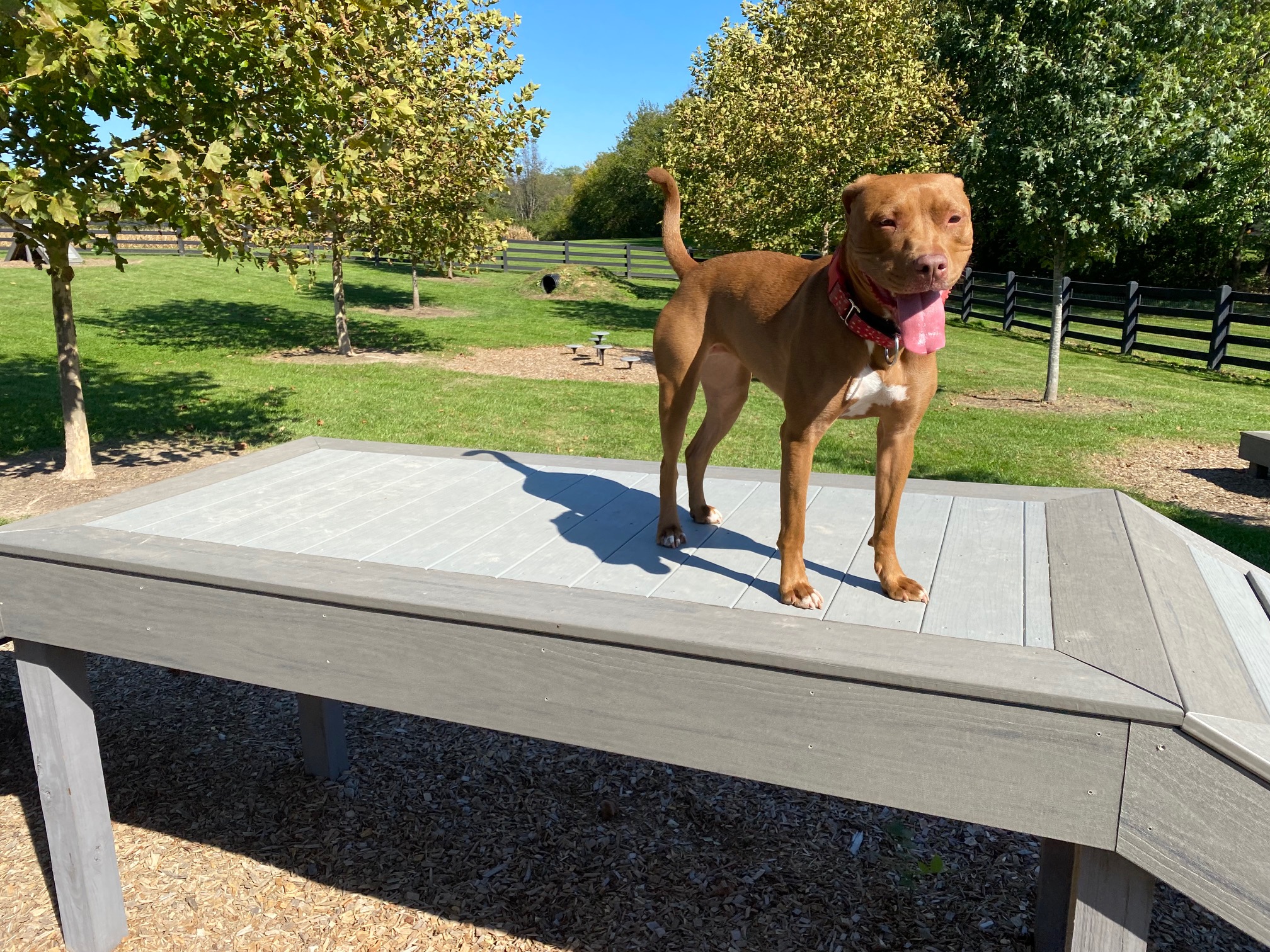 Yeah, it’s a pretty nice place. There was a dog park in our town in PA, but it was mostly muddy and there were rarely other dogs there, plus no equipment. This is much better, I just wish my dogs were a little more well-adjusted. Ah, well, we’ll get there eventually I hope.