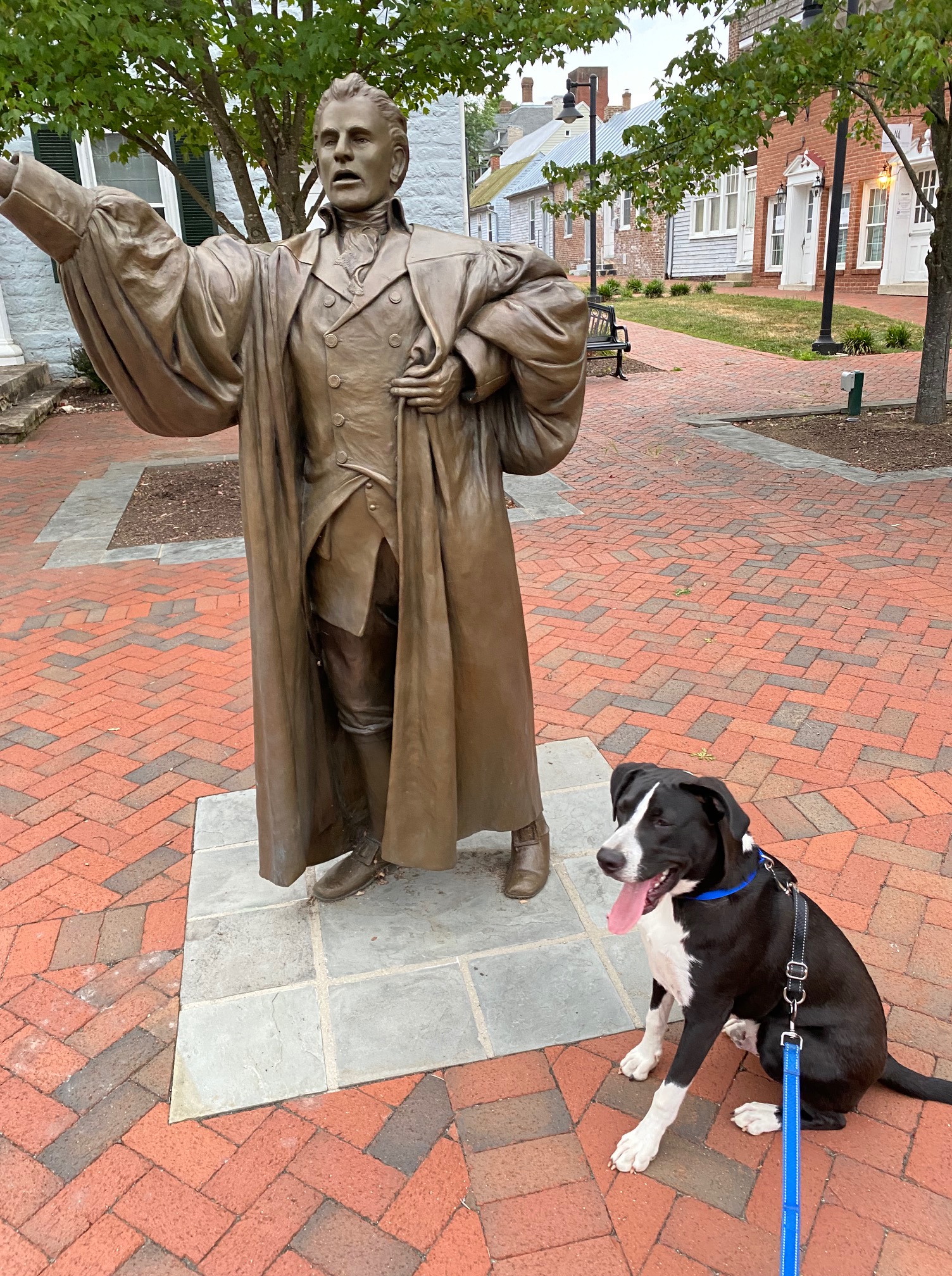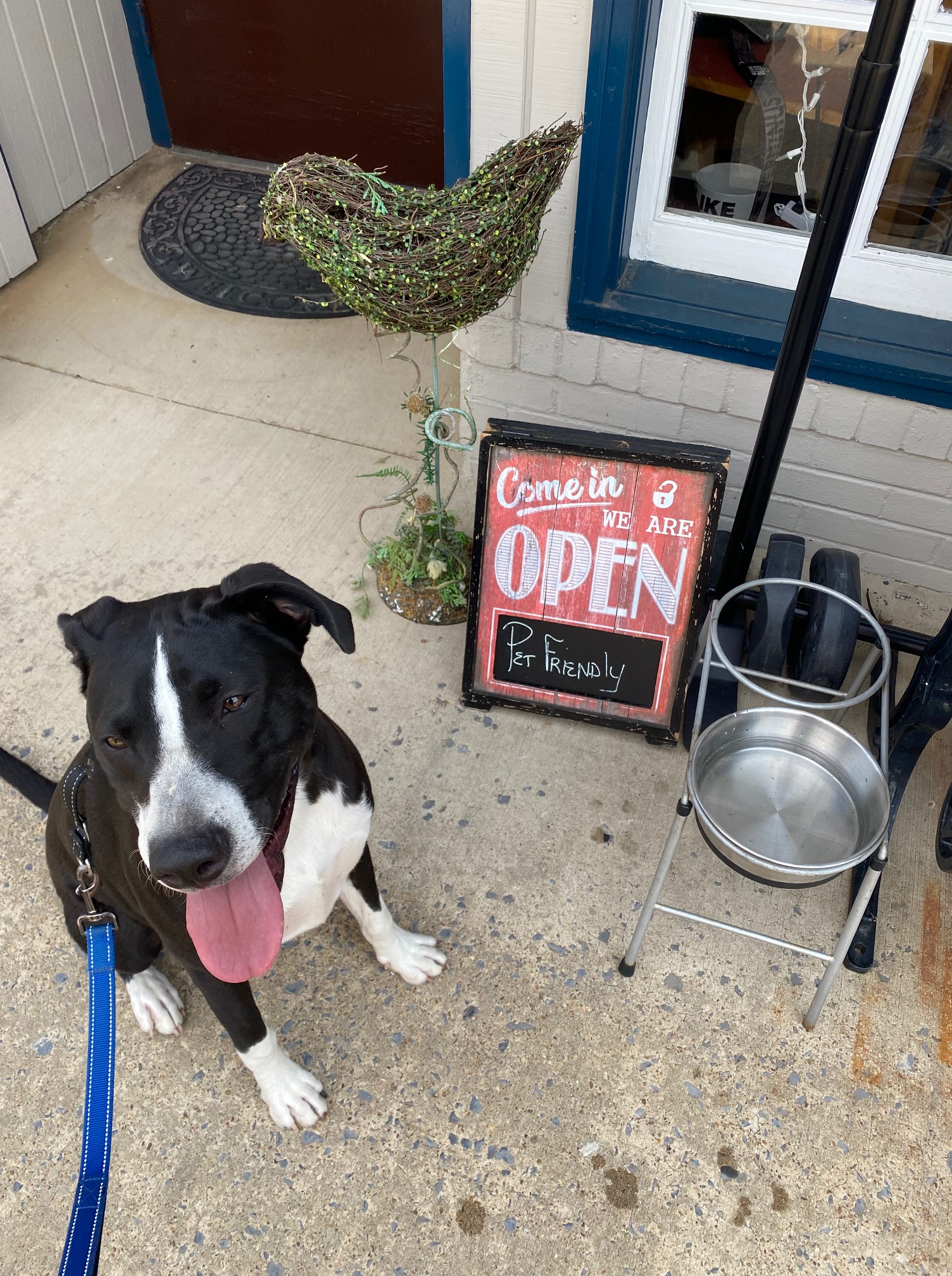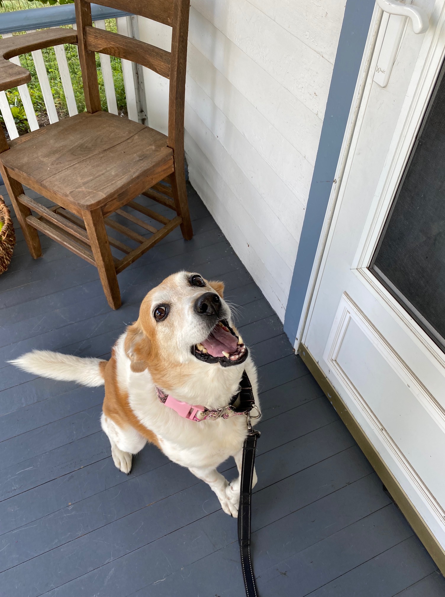Otis is running for mayor of Woodstock. He greets everyone, prancing along the sidewalk on high alert, his tail going like a windshield wiper anticipating greeting his constituents. He loves to walk at noon to flirt with customers seated at the sidewalk tables outside the café or waiting on the lawn talking on cellphones outside the courthouse. He is getting better with his dog reactivity, but not without a lot of effort/preparation from us. This morning we took three detours to avoid passing another dog on the sidewalk and still popped out from Lawyer’s Row and ran smack into an incredibly well behaved cattledog who simply stared at Otis’ freak out and then trotted back to her owner.