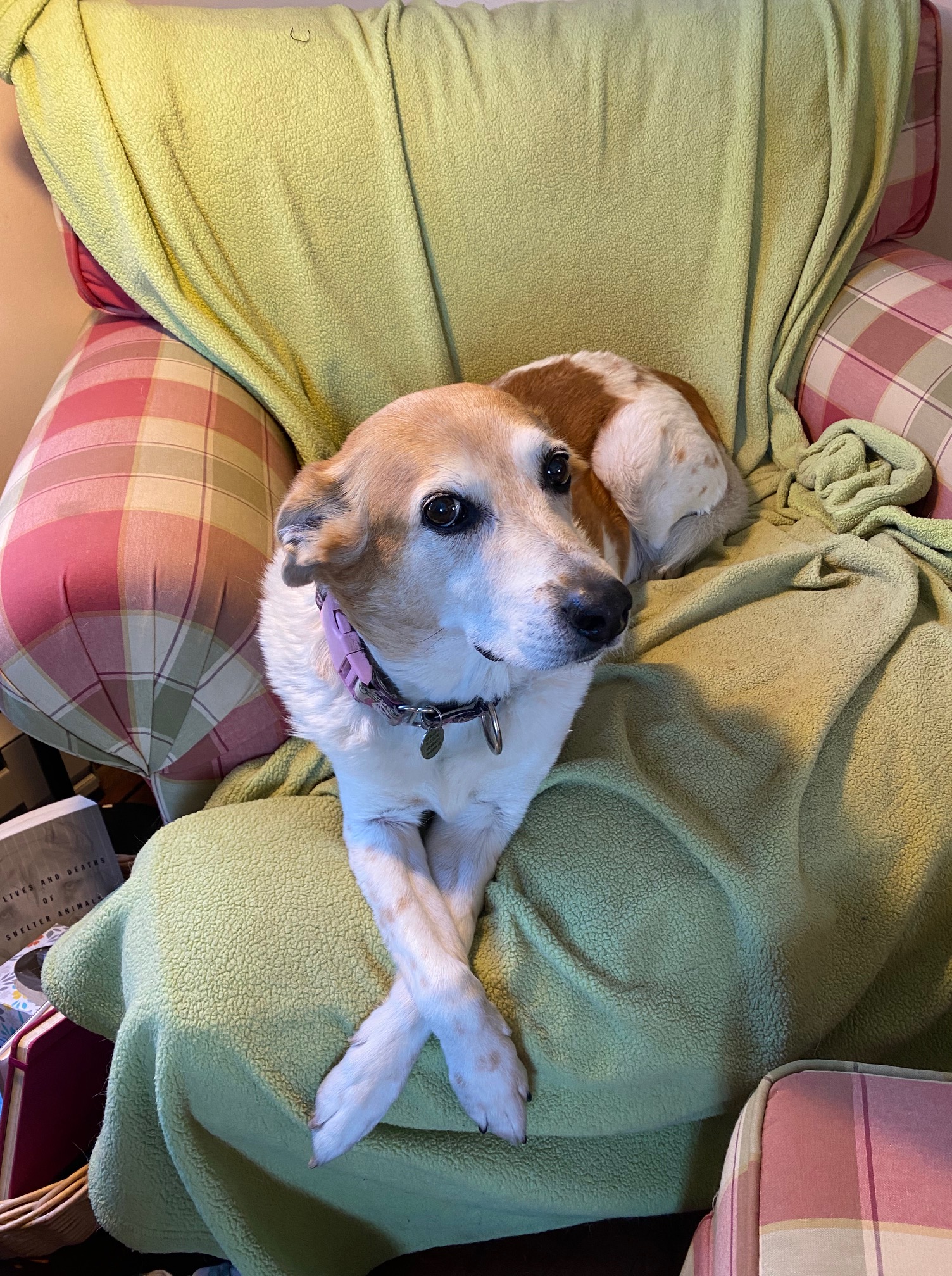 Bippity is about a year old, just 26 pounds and according to her caretaker she is sweet and friendly. If you know anyone looking for a pup like this, encourage them to reach out to me. Like Dippity, I expect there to be plenty of takers.