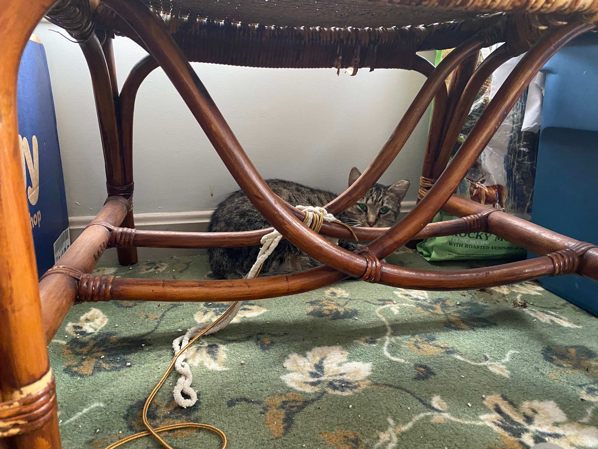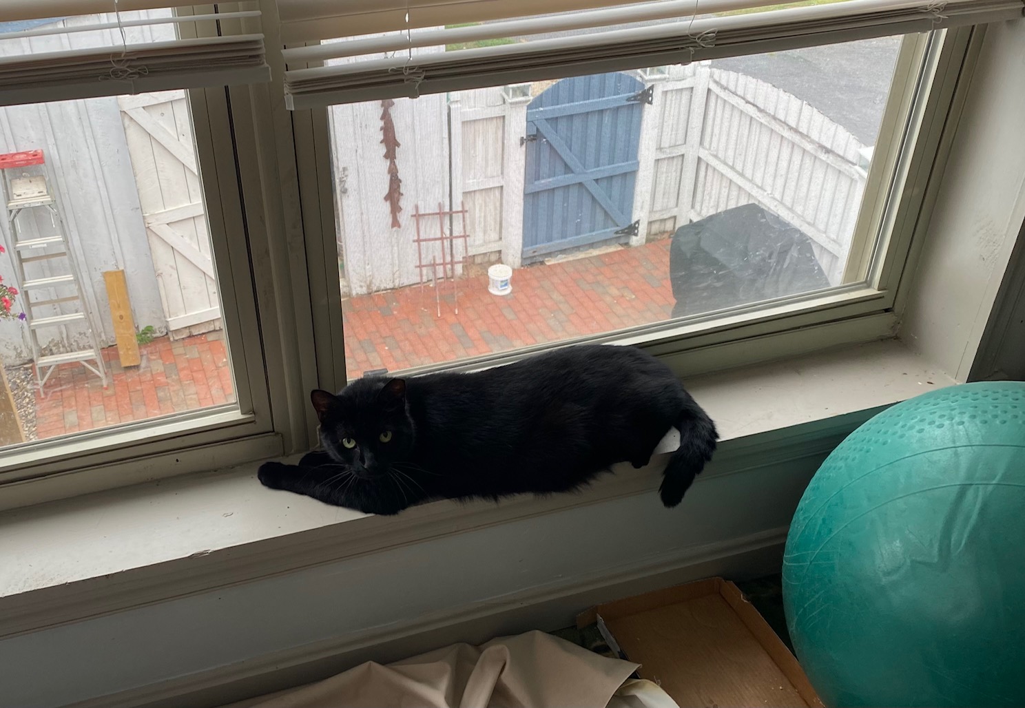 Now ‘the girls’ are luxuriating in the cushy, cool space. Four out of five have warmed up to me, and Willow is coming around. She no longer hides at the sight of me, but stays in her permanent spot on the windowsill next to the air conditioner and just considers me.