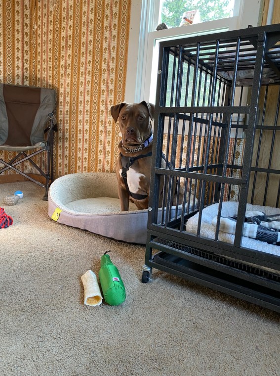 She was anxious and understandably confused, barking at me and Nick, and dodging my hand when I tried to come in and put a leash on her. We left her alone, knowing she needed a shut-down of sorts, giving her food, water, and tossing her treats each time we checked on her.