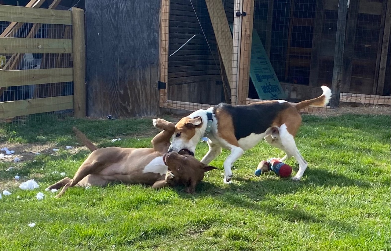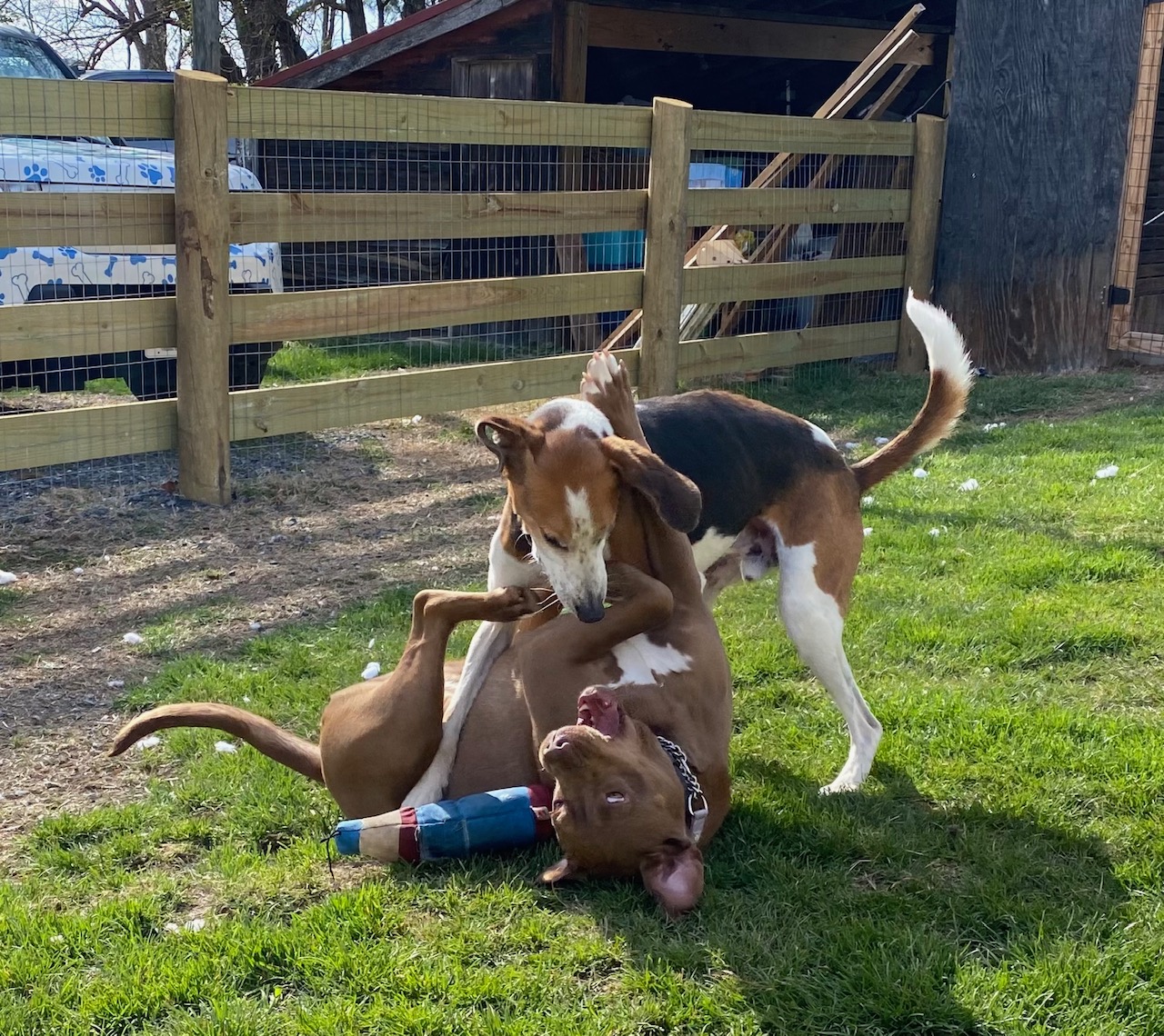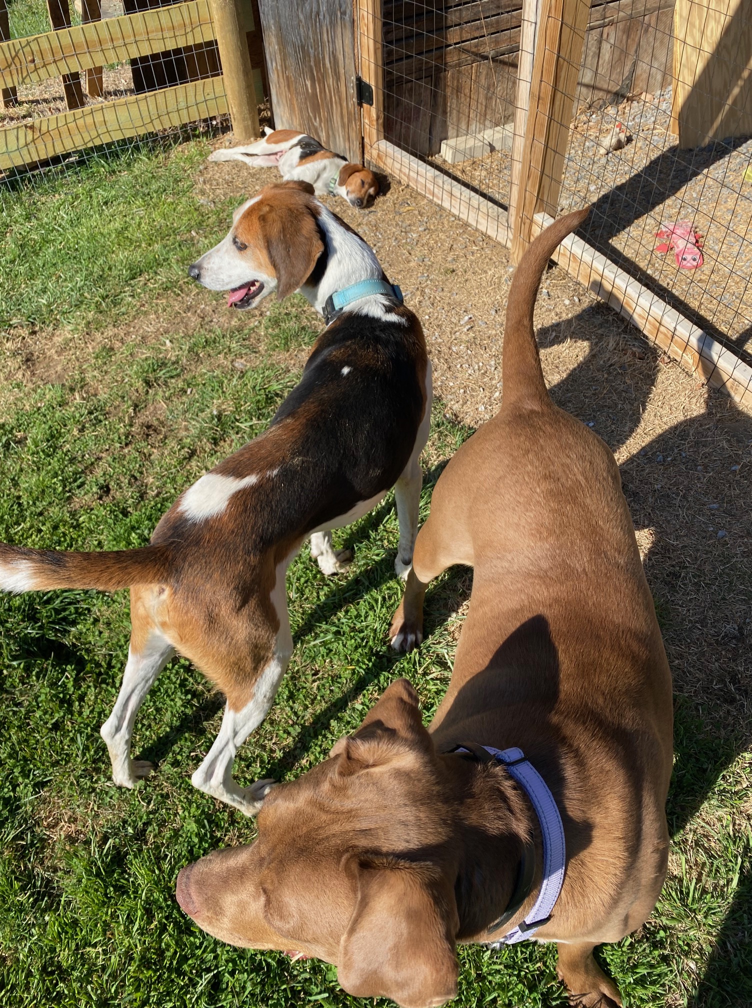 It’s quite the dog party at my foster cottage. The last month with the hound dogs has been relatively quiet. Other than the occasional concert, they are a pretty quiet pair. Lots of sleeping, casing the joint for treats, and counter-surfing, but no real rough-housing.