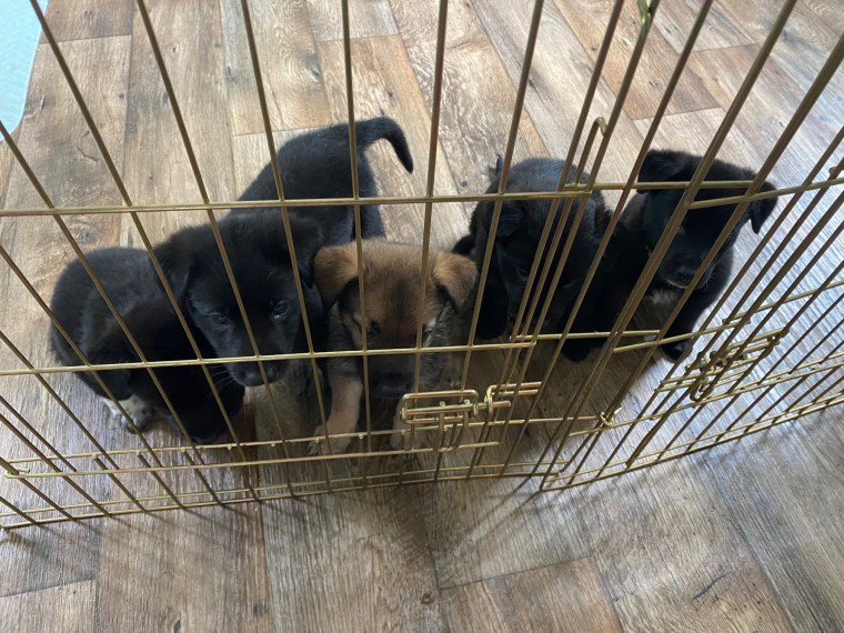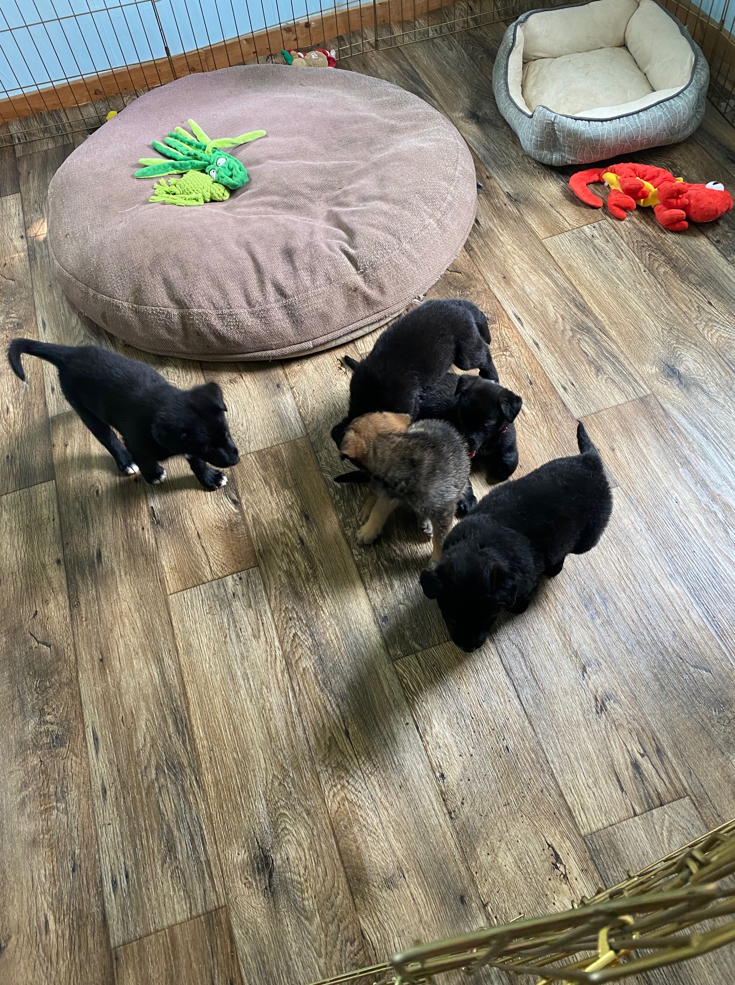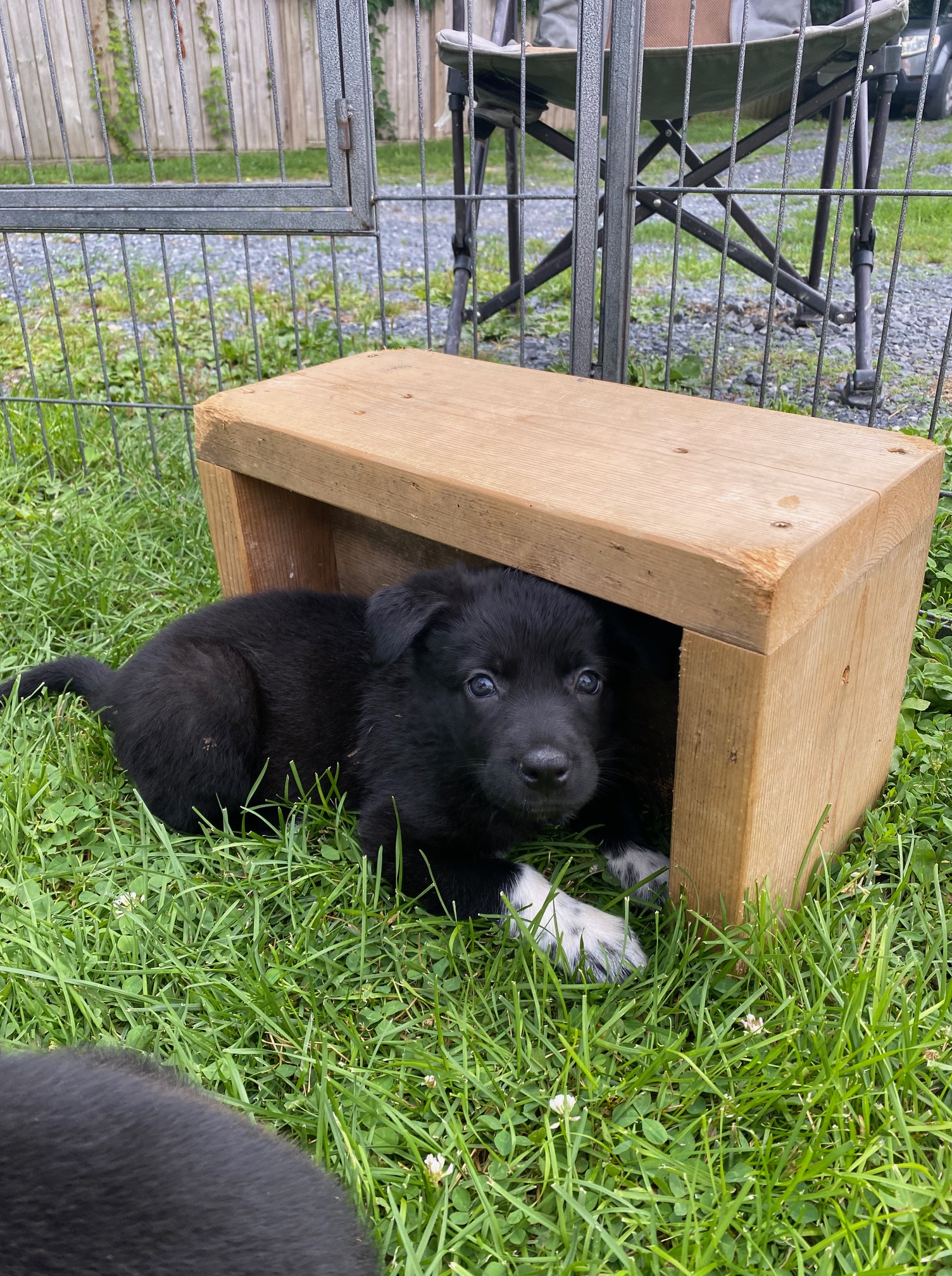 The puppies are growing and eating and pooping pretty much everywhere. Stela is mostly finished nursing them. She goes in for a few minutes about two or three times a day, but I think she only comes in because she’s my shadow and I’m in there to clean (which is helpful because it keeps the puppies from ‘helping’ me).