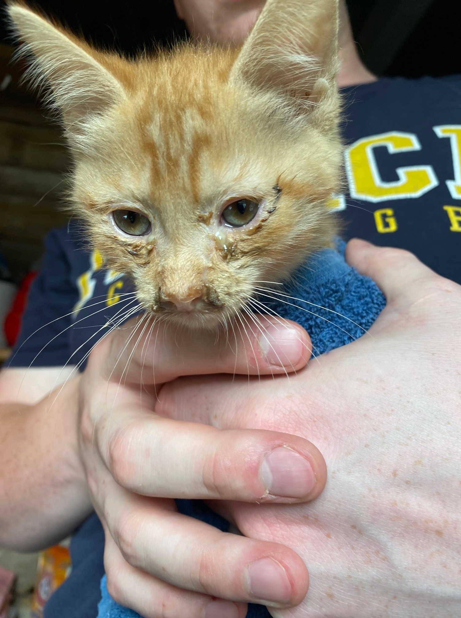 Two of my seven came down with an URI (Upper Respiratory infection), which I’m learning is a ‘thing’ in kitten fostering. It’s a new thing to me, though, so I’m still learning how to safely medicate their tiny noses and eyes and measure minute amounts of medicine. Plus, because it’s highly infectious, cleaning, which was already taking a ton of time, is taking even more time.