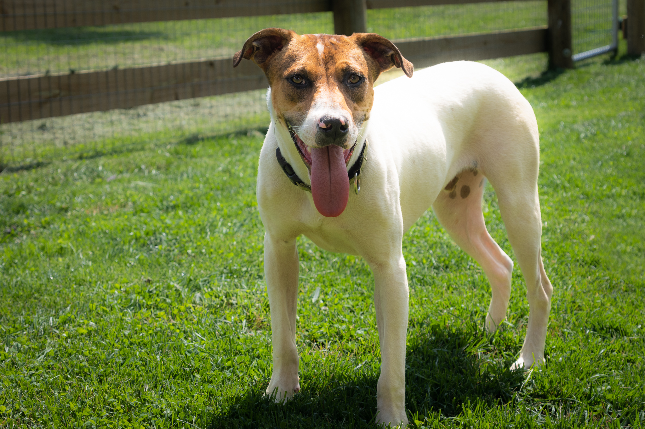 Maraschino is the larger of the two lookalike pups. He has distinct freckles on his nose and is wearing a purple collar. Maraschino is a beautiful puppy who looks to me like the definition of ‘puppy’ you’d find in the dictionary or a children’s book with his floppy ears, beautiful white markings, freckly nose, constantly wagging tail, and sturdy build. He is an outgoing puppy – maybe the most outgoing, but Ranier, his little twin is also.