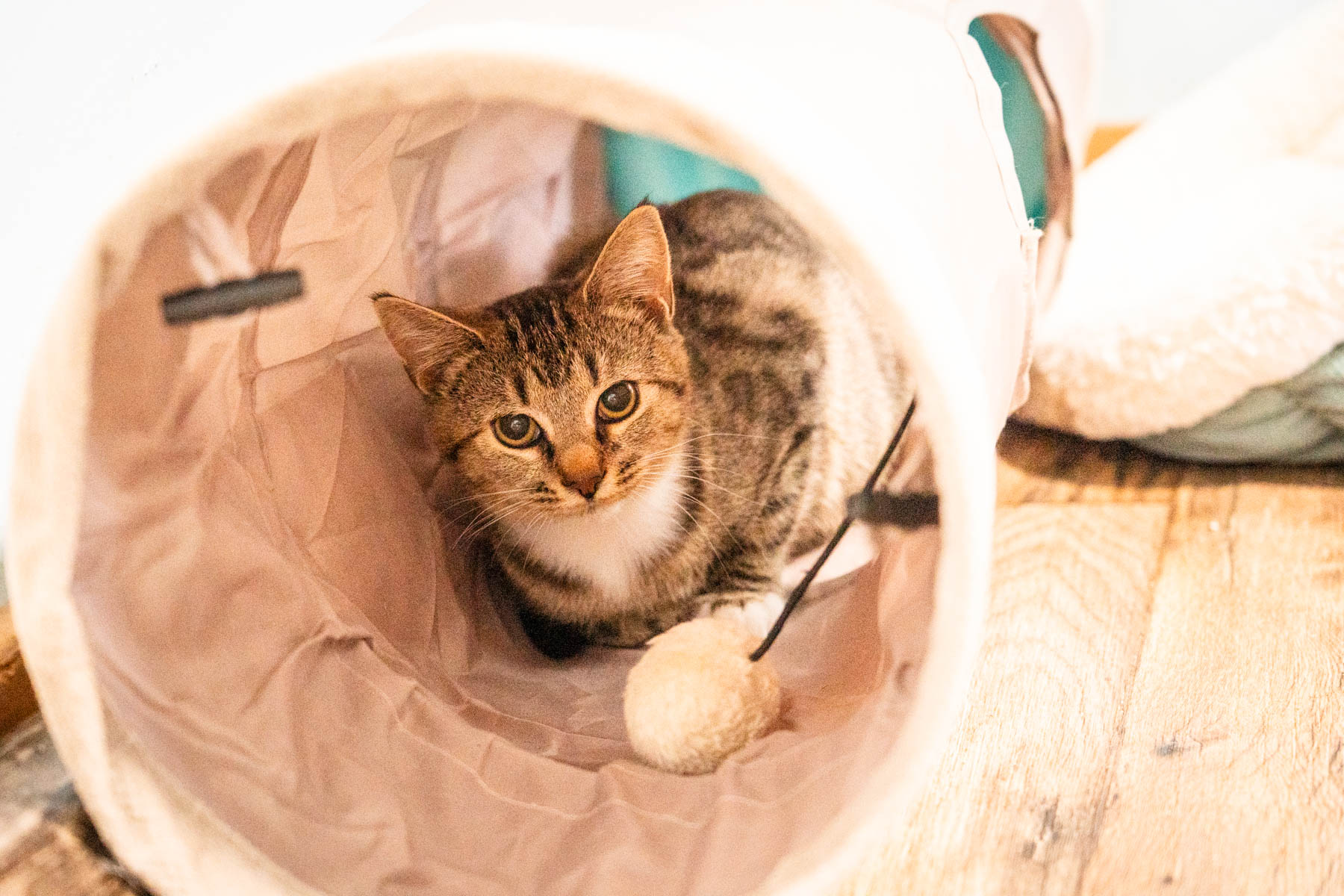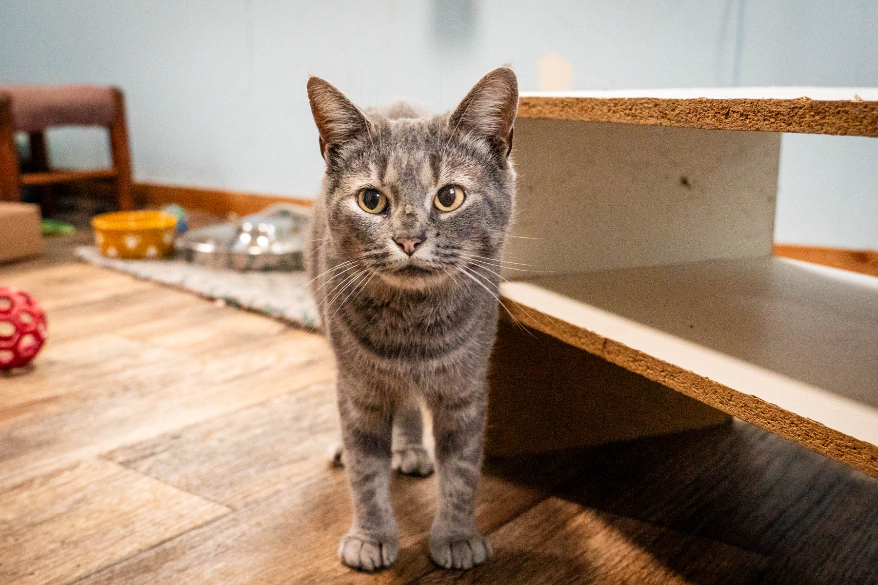 She hides in her kitty tunnel or scurries behind the litter box when I come in. When I do catch her, she submits to my ear rubs with purrs, but I’m hopeful I’m not doing more harm than good since she isn’t improving very quickly. If she was a dog, I’d give her space and let her come to me, but since that tactic didn’t work, I’ve begun these forced attention sessions daily.