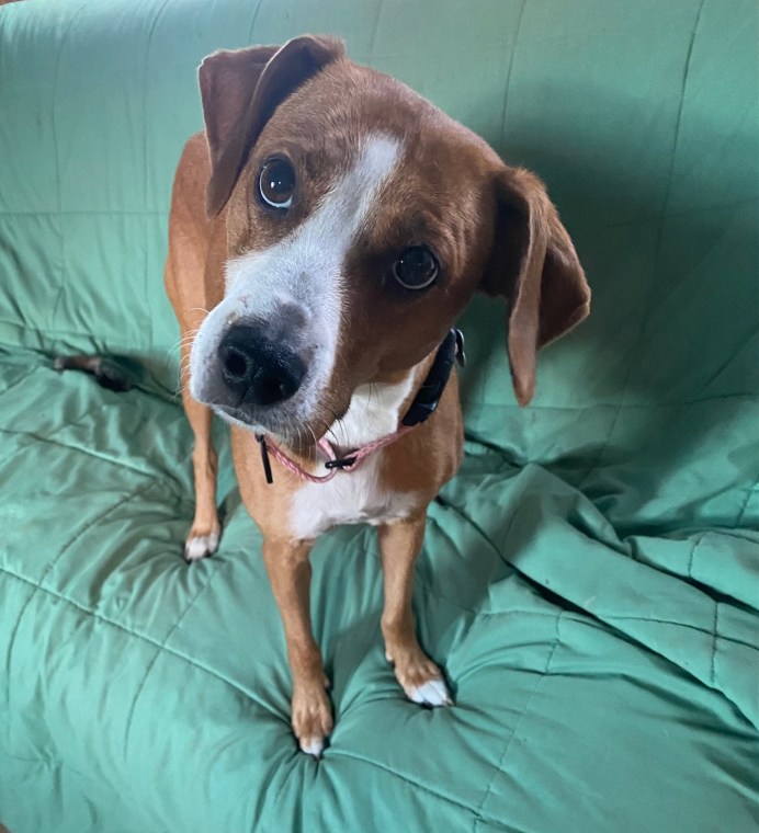 Krimpet (Snack Cake Pup mama) is available for adoption and will be ready to go home in February!