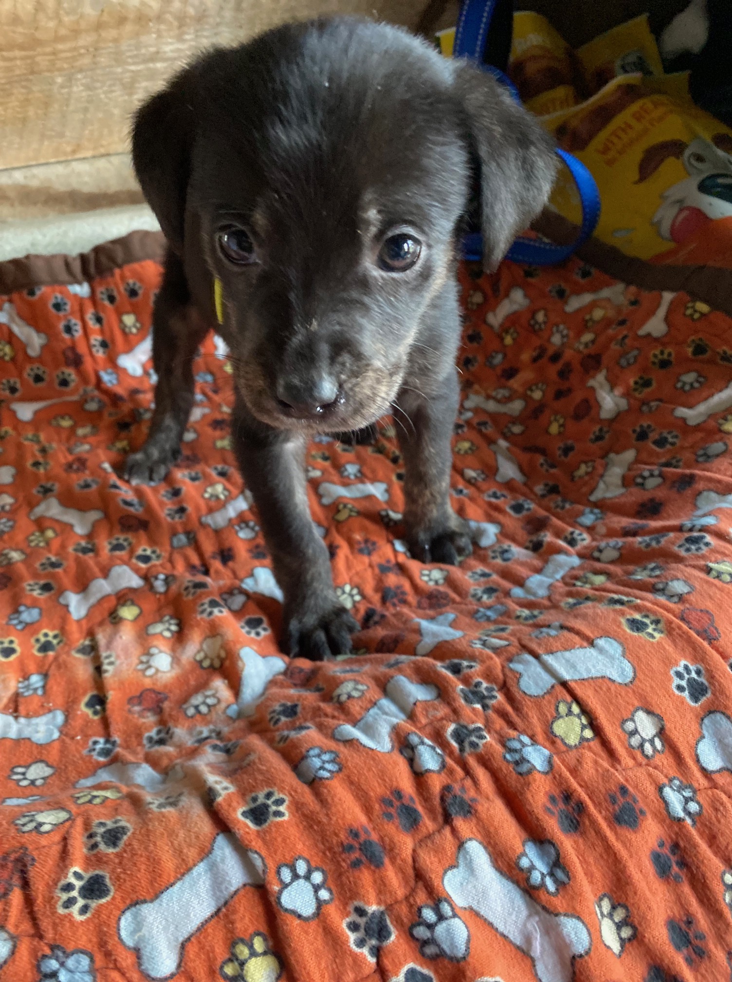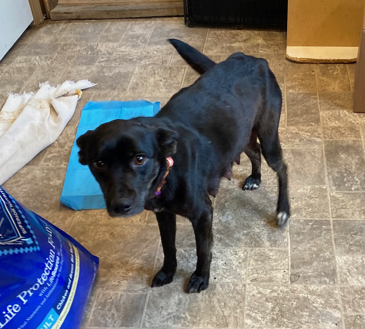 When she came into my care, Beatrix was severely underweight and riddled with worms. She has had no veterinary care and neither have the puppies. Everyone has gotten their first vaccines and begun a deworming protocol. Beatrix is headed to the vet for a rabies vaccine, health check, and 4dx next week. Beatrix is a doll baby. Grateful for every drop of attention she gets from me, so far quiet in the face of Marley’s overly enthusiastic welcome, and seems to be housebroken (a happy plus). If you’re looking for a sweet, small, people-friendly pup, you might inquire about this one.