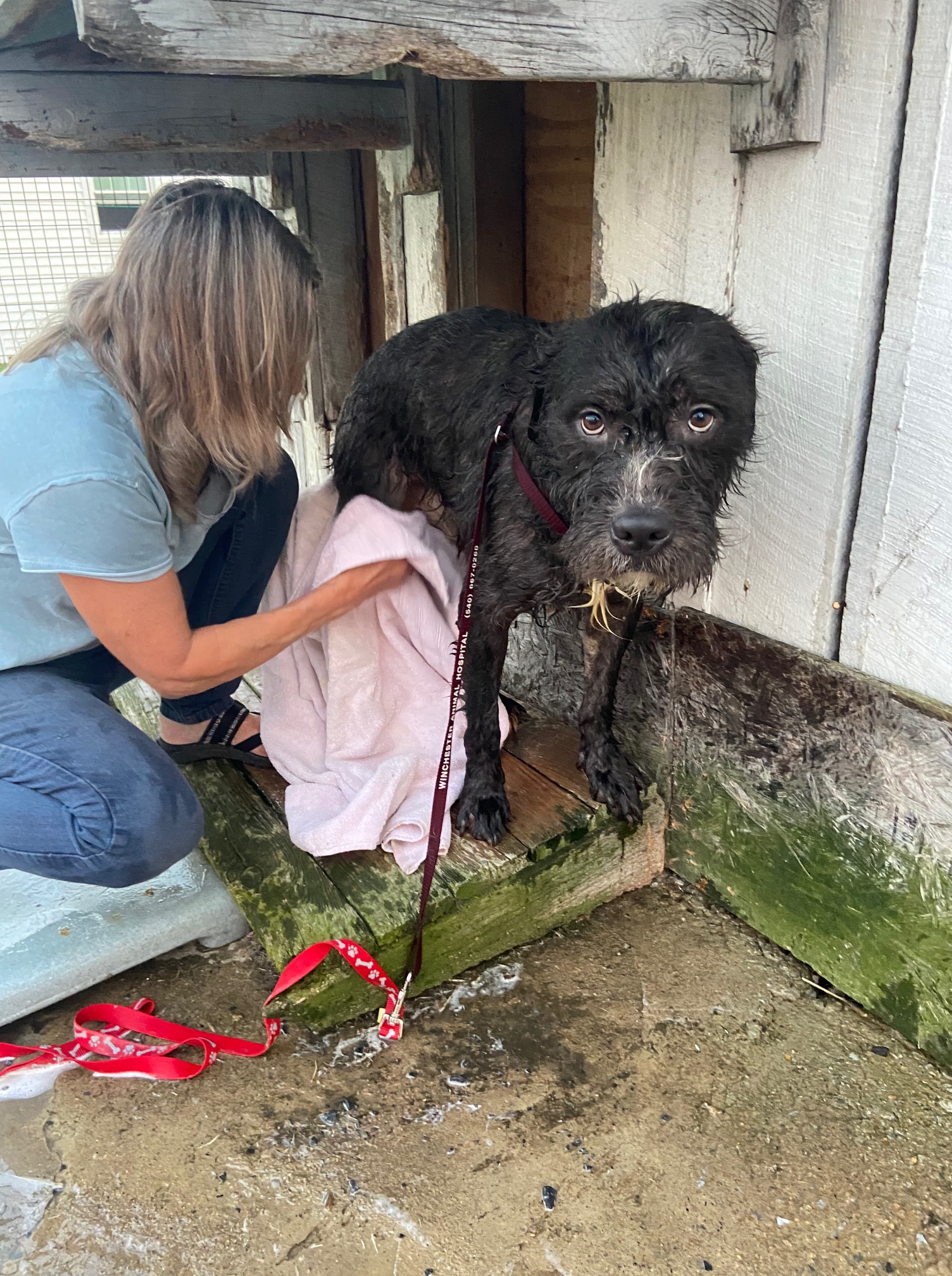 At some point in our story, the landlord sold the house. Facing eviction, the ‘breeder’ reached out for help and the Humane Society was contacted. That led to Melisa and I driving out to the house three weeks ago to pick up the four little puppies and the two older puppies. A day later the parent dogs were also surrendered.