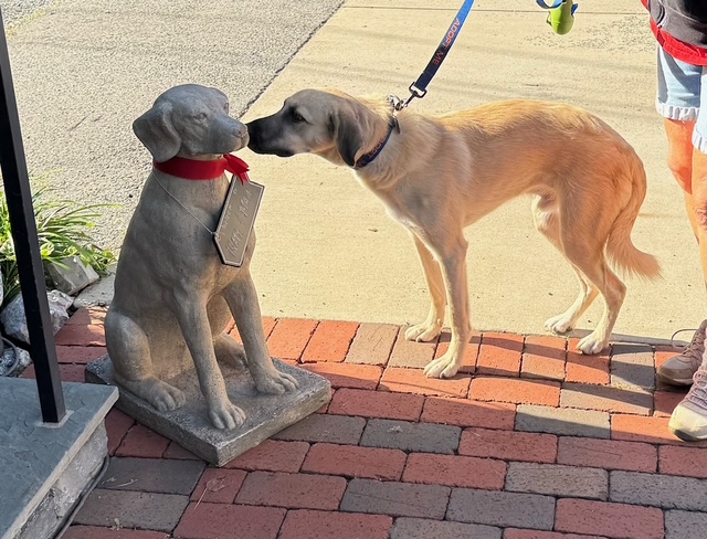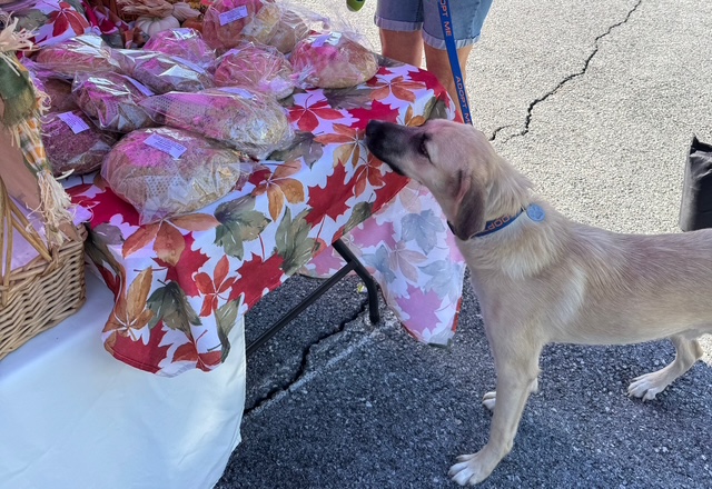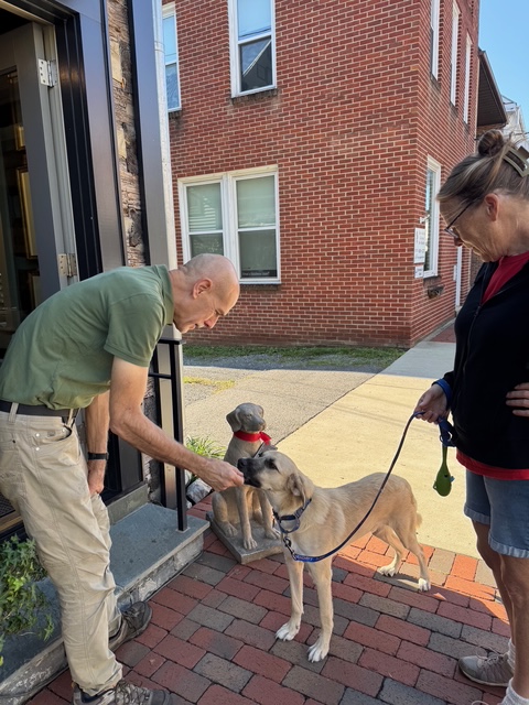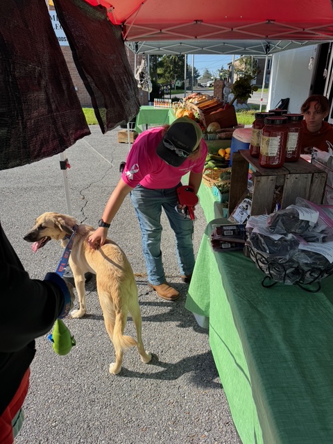 Not anymore! If there was any doubt that Berry is a dog about town, it has all been shushed. My ‘shy’ guy spent this past Saturday greeting all kinds of people at the Farmer’s Market and in downtown Woodstock.