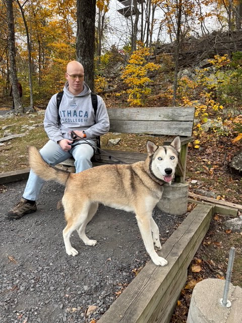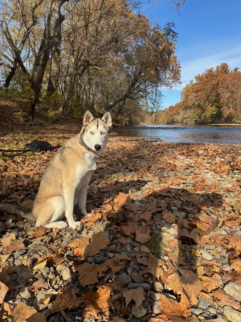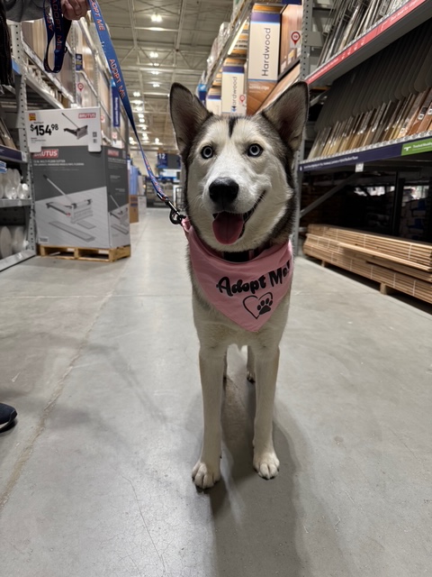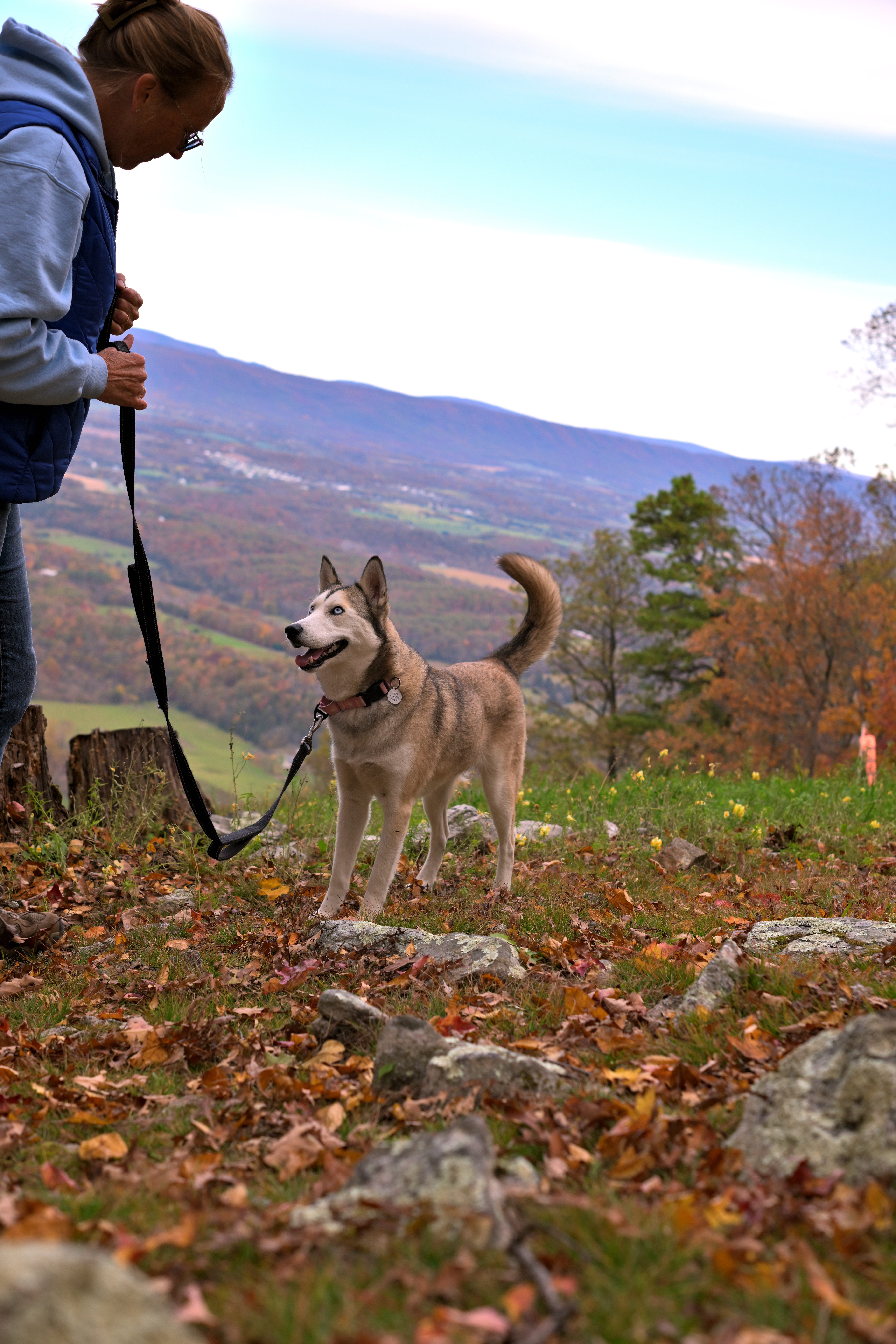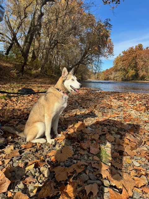 Leche needs an active adopter who is looking for a running, hiking, and/or adventuring buddy. She’s been wonderful everywhere we’ve taken her and happily met friends with two and four legs. She travels great, and her leash manners are improving. She is crazy smart, so she’ll thrive best with someone who knows how to train a dog. I’ve heard Husky’s are stubborn, but haven’t really seen that with her. She does have the prey drive, at least when it comes to squirrels and birds, but as mentioned, so far she’s been quite respectful of the cat.