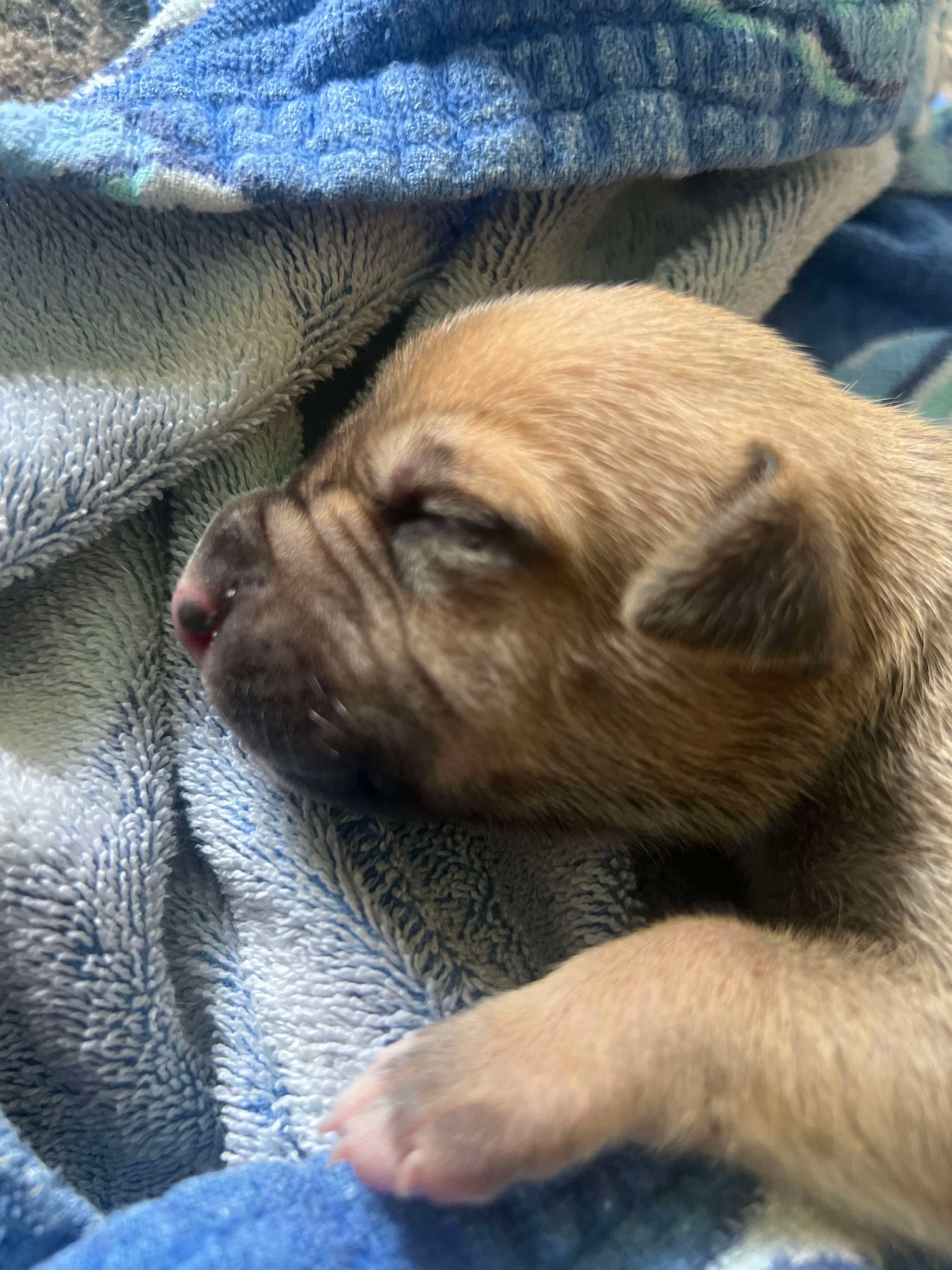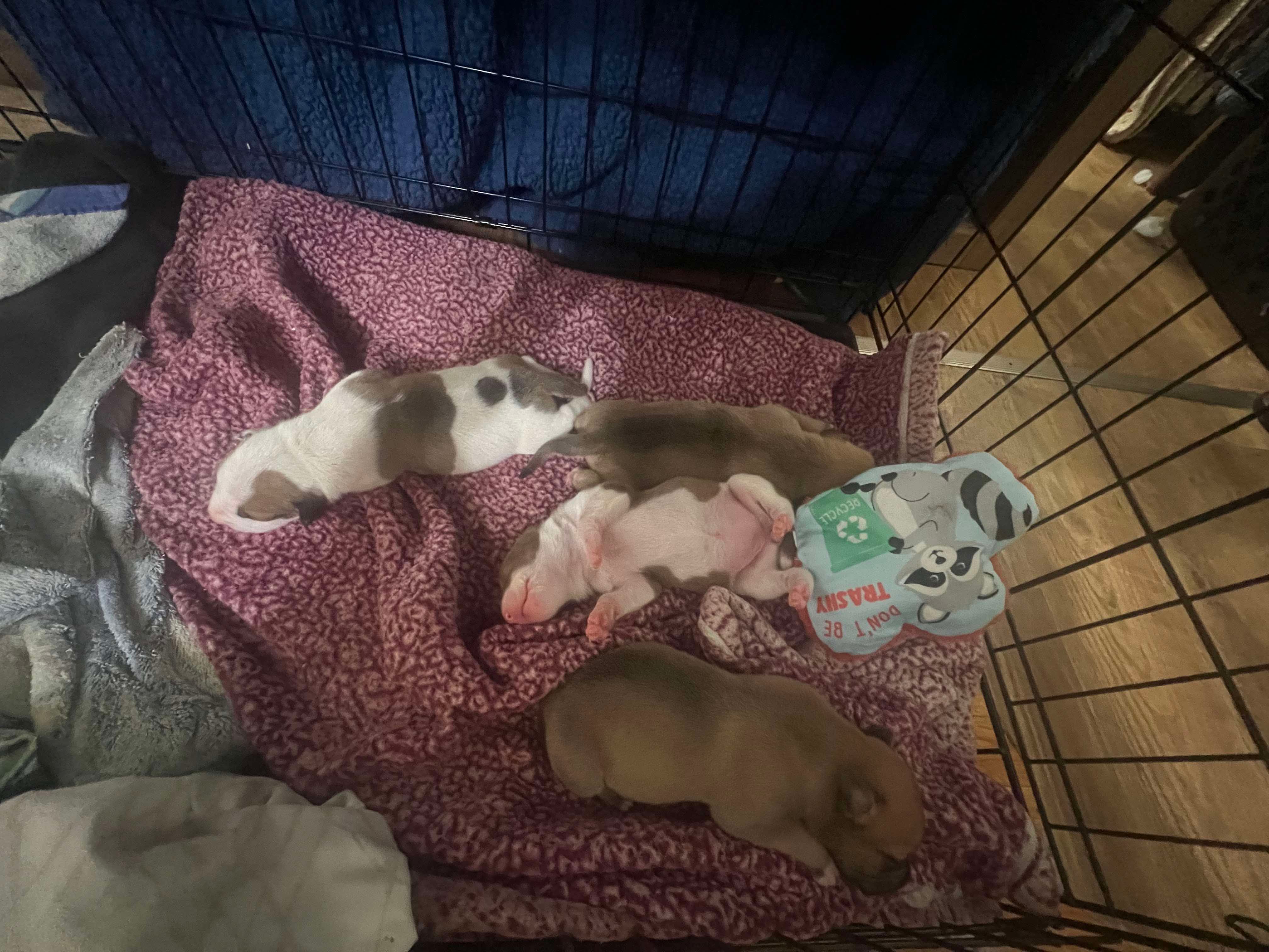 The Beanie Babies (Pinto Bean, Green Bean, Soy Bean, and Kidney Bean) are only days old. But thanks to X-Port Paws and Team Memphis, they are safe. We are waiting on the distemper anti-bodies test results (the shelter has been wrestling with an outbreak), and then they will head north with Dani and move into the foster cottage.