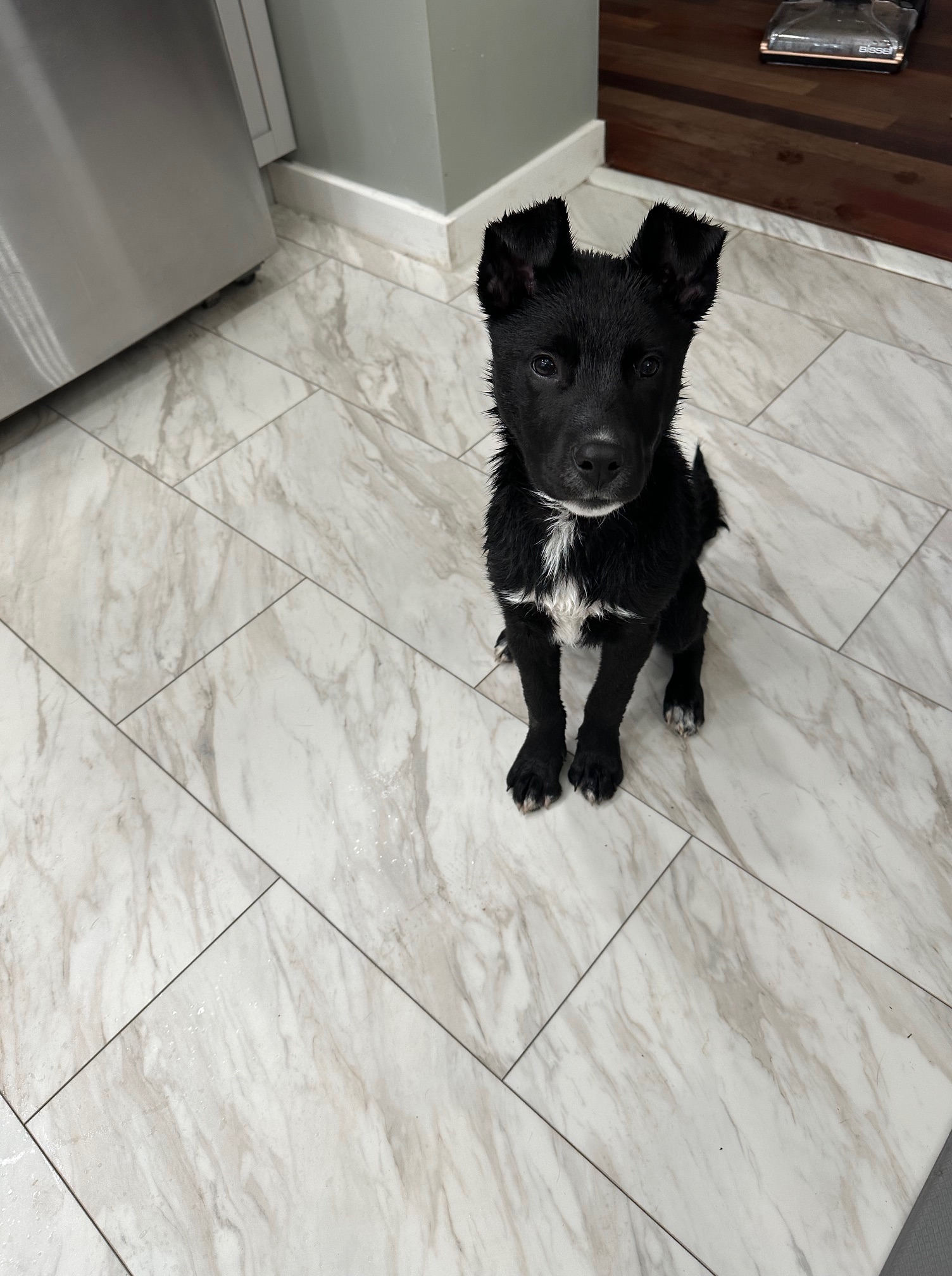 This pup is pretty much turn-key. JJ is already solidly housebroken (sigh of relief here), walks pretty well on a leash (considering he is still young and excitable), and is quiet in his crate (and kind of getting used to having to go in it).