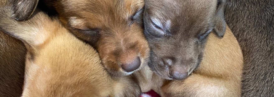Now the challenge for me is to keep these little darlings engaged and happy and, hopefully, learning a few things beyond how to drag their sibling around by the collar or scale the puppy pen fence.