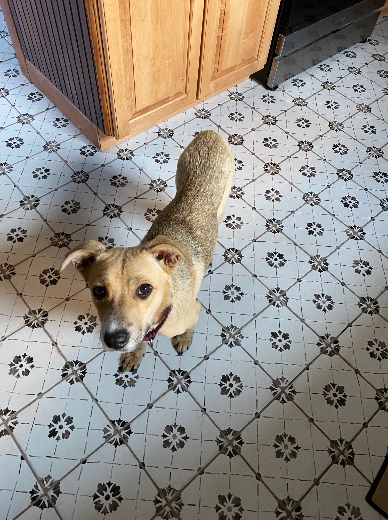 She quickly submitted to Fanny’s established leadership, will run and chase Otis but not wrestle with him (he is 3x her weight), and took no offense at Gracie’s warning snarls. She is undeterred; with her tail wagging and her happy energy, she trails all three other dogs all over the house.