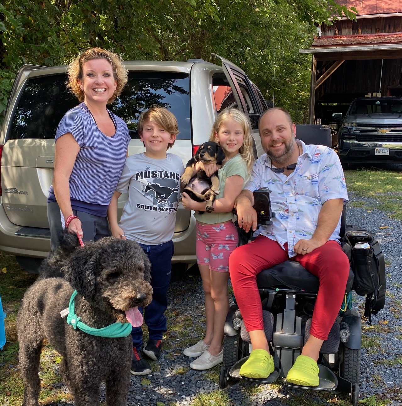 Meanwhile, Alex has finally found his forever family! He went home last week with a family who adopted a puppy from me six years ago. Slat (now Cooper) from the Road Trip litter will be Alex’s new brother. His adopter told me he turned out to be a super chill dog and is very much loved. Here’s Slat (and his adopter) to jog your memory (think they have a ‘type’?!):