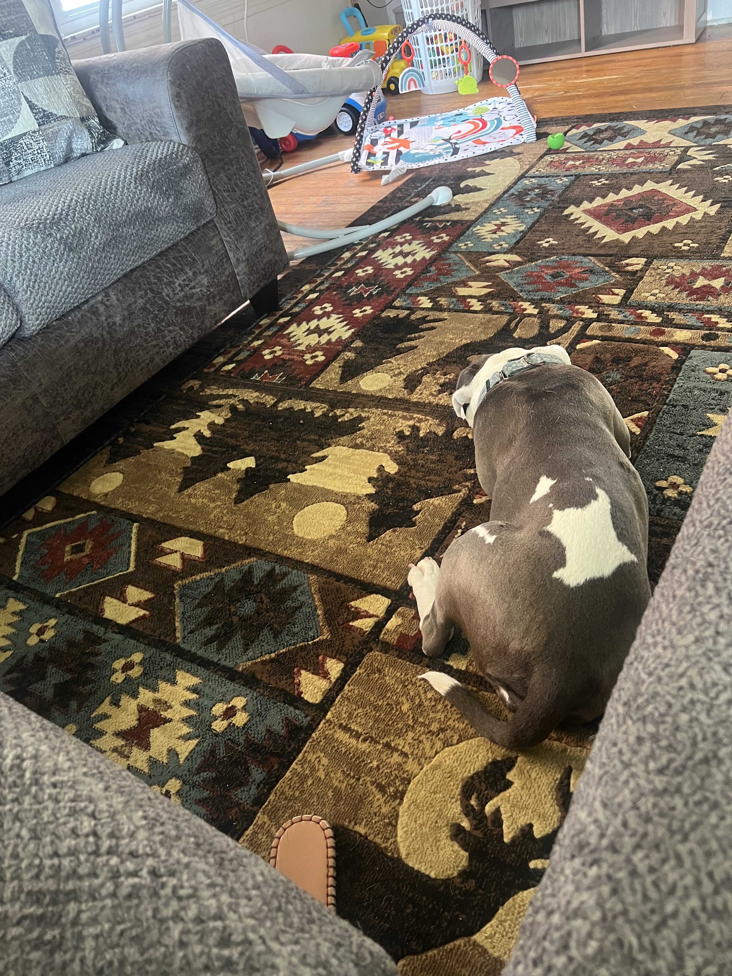 At this juncture, none of the adult dogs can be loose in the cottage at the same time. So it’s a game of crate and rotate and walk and keep track of who hasn’t been out recently to potty and who needs snuggle time with me and what the best set up is to have quiet for my zoom call.