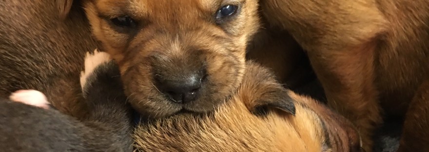 Sitting with Edith last night while she panted and panted next to me on the Frank bed, I wanted to do more for her. She’s exhausted. Her pups are growing like little monsters, doubling in size and energy. As I ran my hand over her protruding ribs, I glanced at the pups. I want to resent them. But they are cute, and she certainly loves them. Edith is doing as well as can be expected. She’s strong despite her gaunt frame.